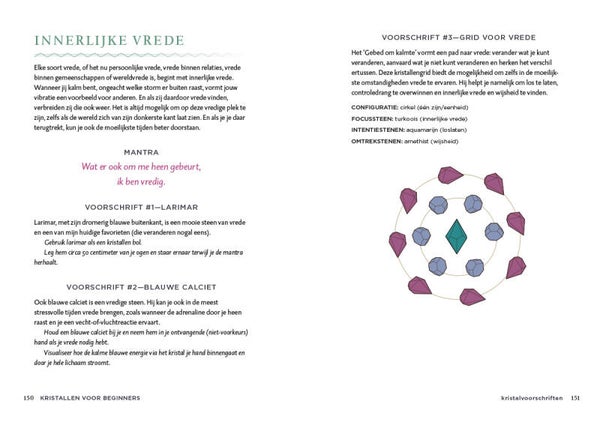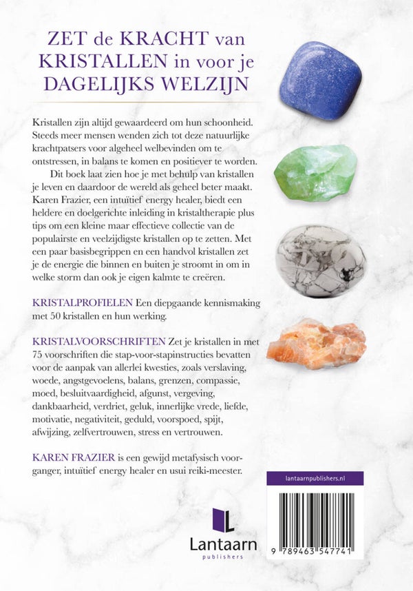 Dit boek laat zien hoe je de kracht van kristallen in kunt zetten voor je dagelijks welzijn. Het boek bestaat uit twee delen: kristalprofielen, bestaande uit een uitgebreide kennismaking met 50 verschillende kristallen, en kristalvoorschriften, bestaande uit 75 voorschriften die stap-voor-stap instructies bevatten voor de aanpak van allerlei kwesties, zoals verslaving, depressie, geluk of liefde. Steeds meer mensen wenden zich tot deze natuurlijk krachtpatsers om in balans te komen en positiever te worden.