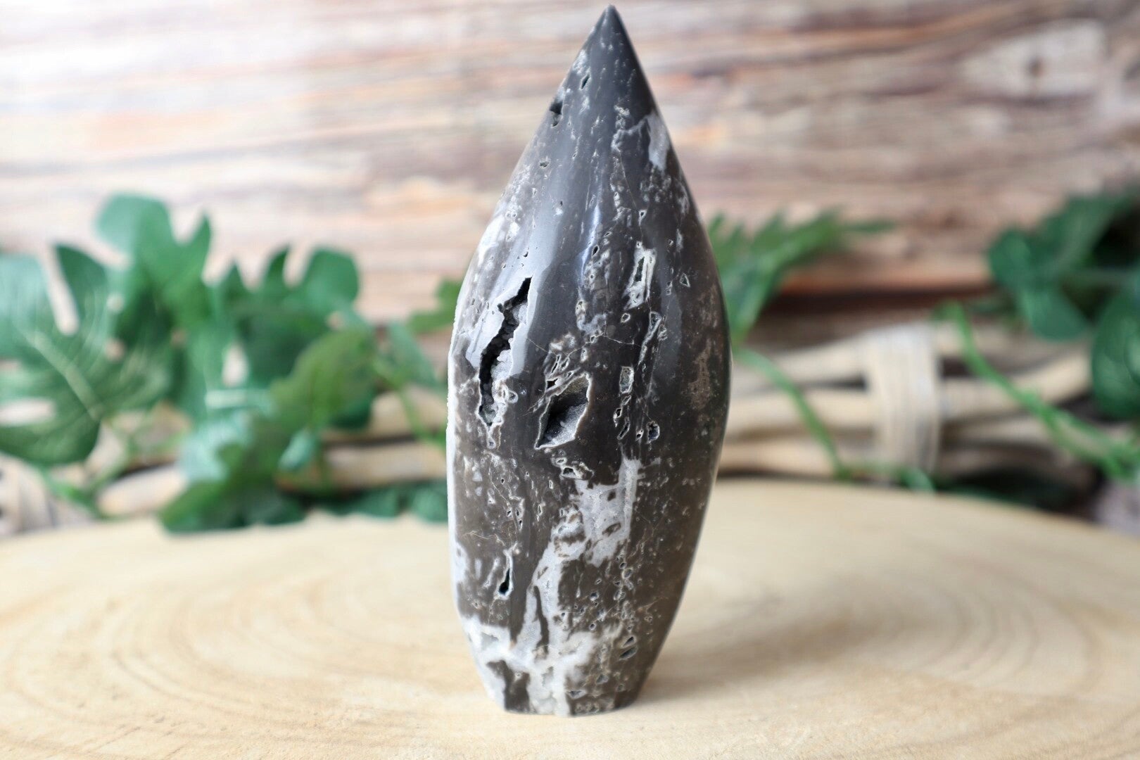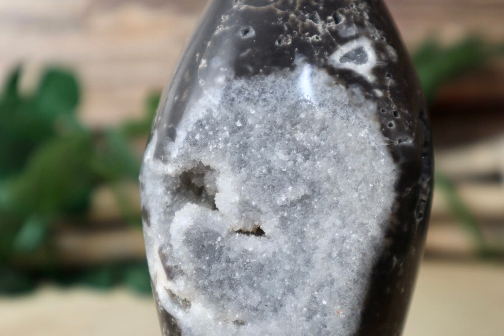 Chalcedoon punt. Met mooie druzy. Puntje niet helemaal gaaf.