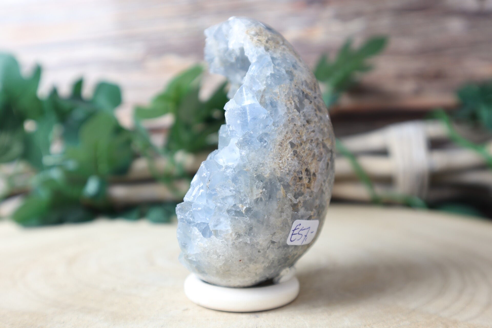 Celestien ei. Met gratis houten ring als standaard.
