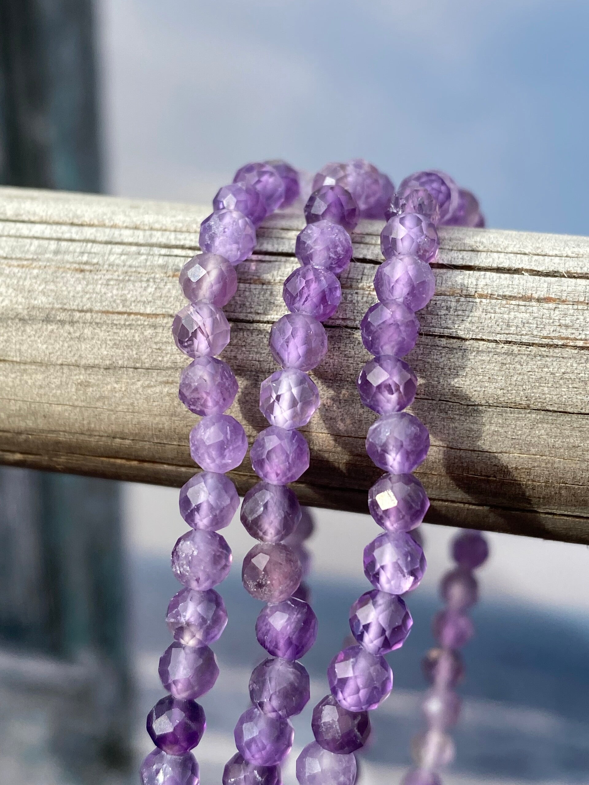 Amethist facet geslepen armband, 4mm kraal. Elastiekvoor pols omtrek +/- 17