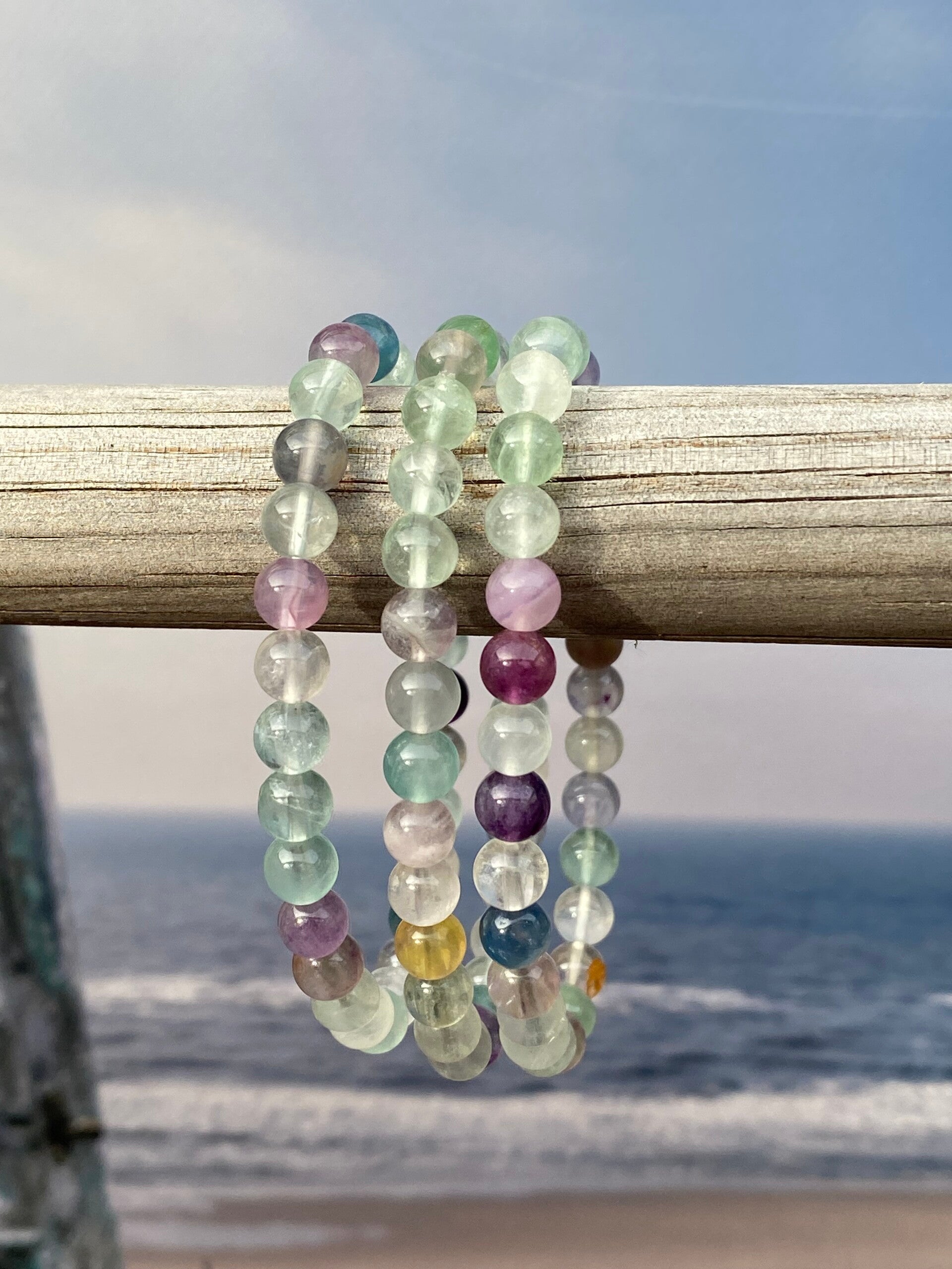 Fluoriet (extra kwaliteit) armband, 6mm kraal. Elastiek