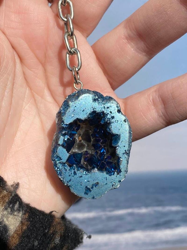 Kwarts geode blauw sleutelhanger