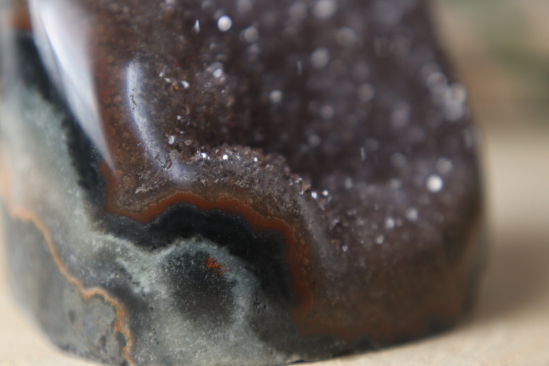 Galaxy druzy amethist bruin/rood met stalactiet.