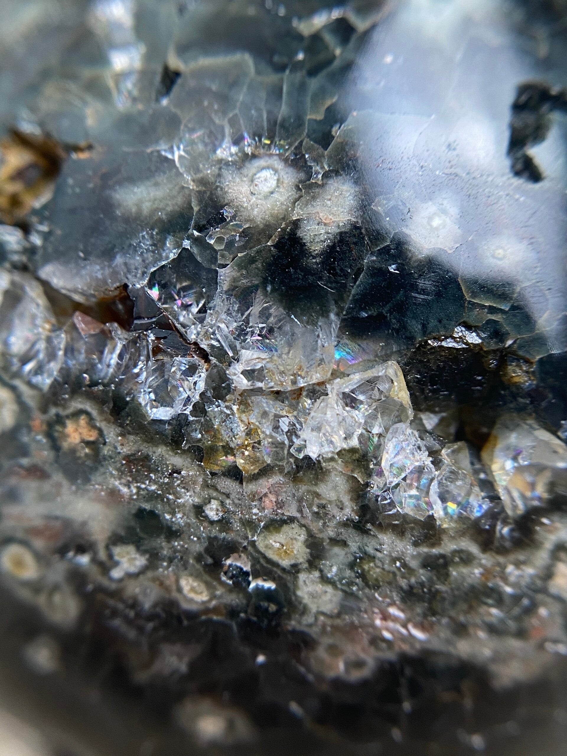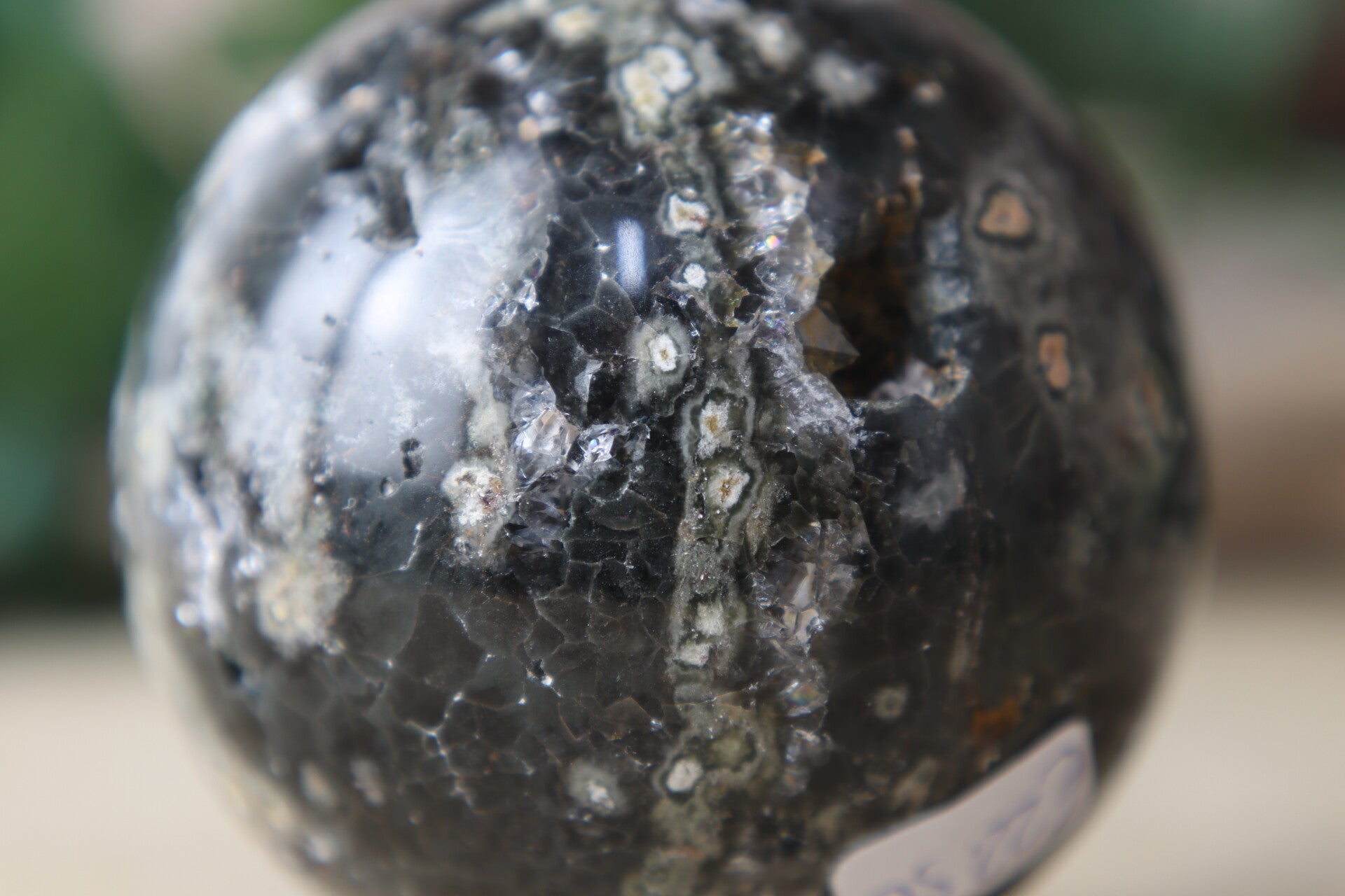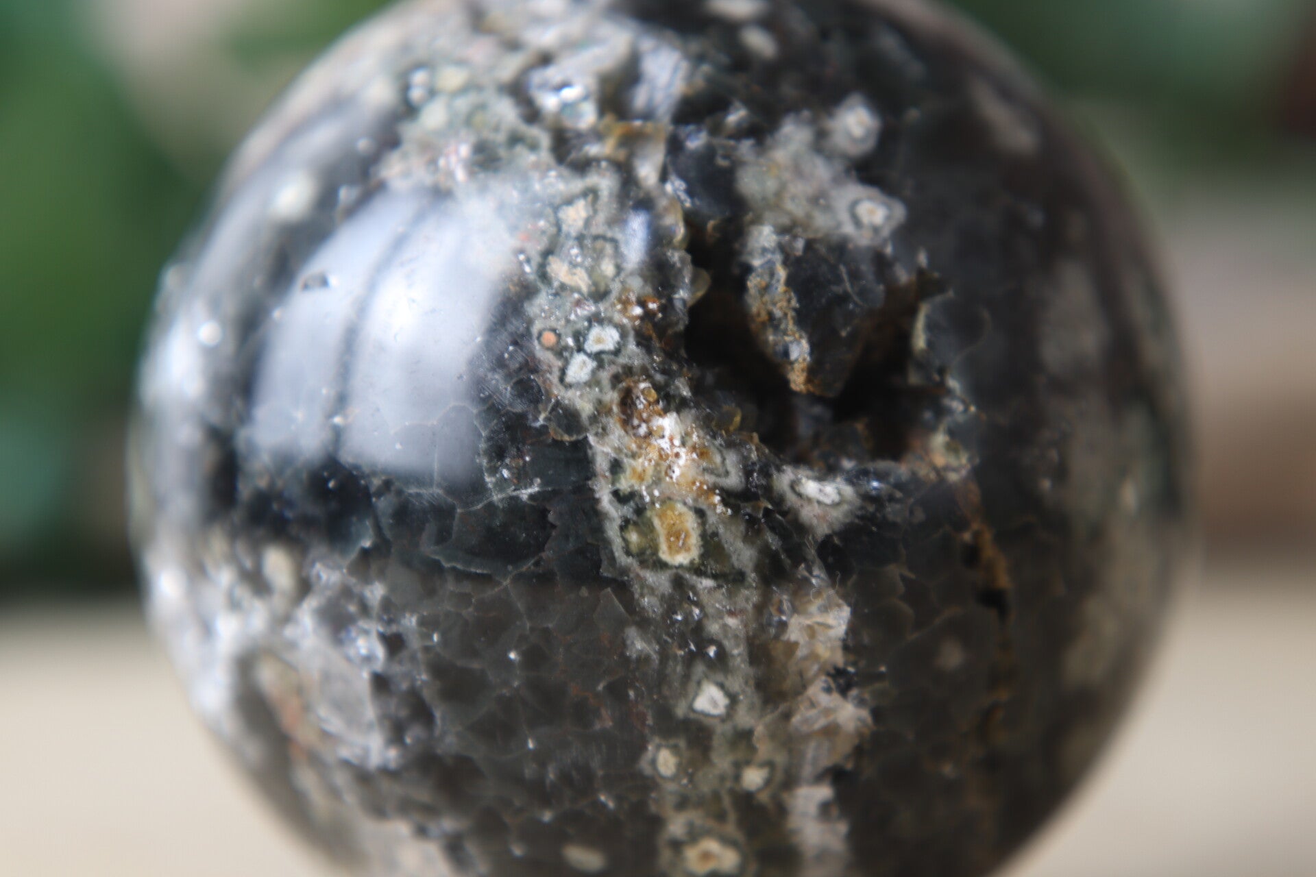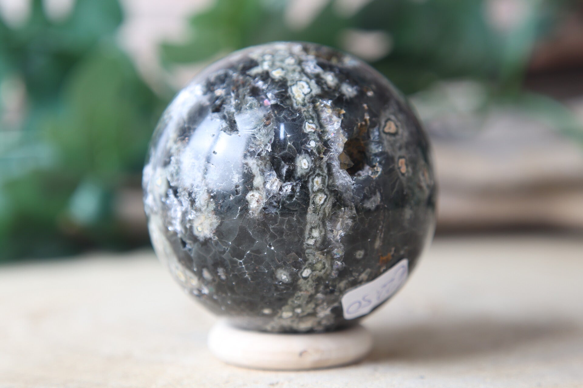 Groene oceaan jaspis bol. Incl gratis houten ring. Met mooie regenboogjes.
