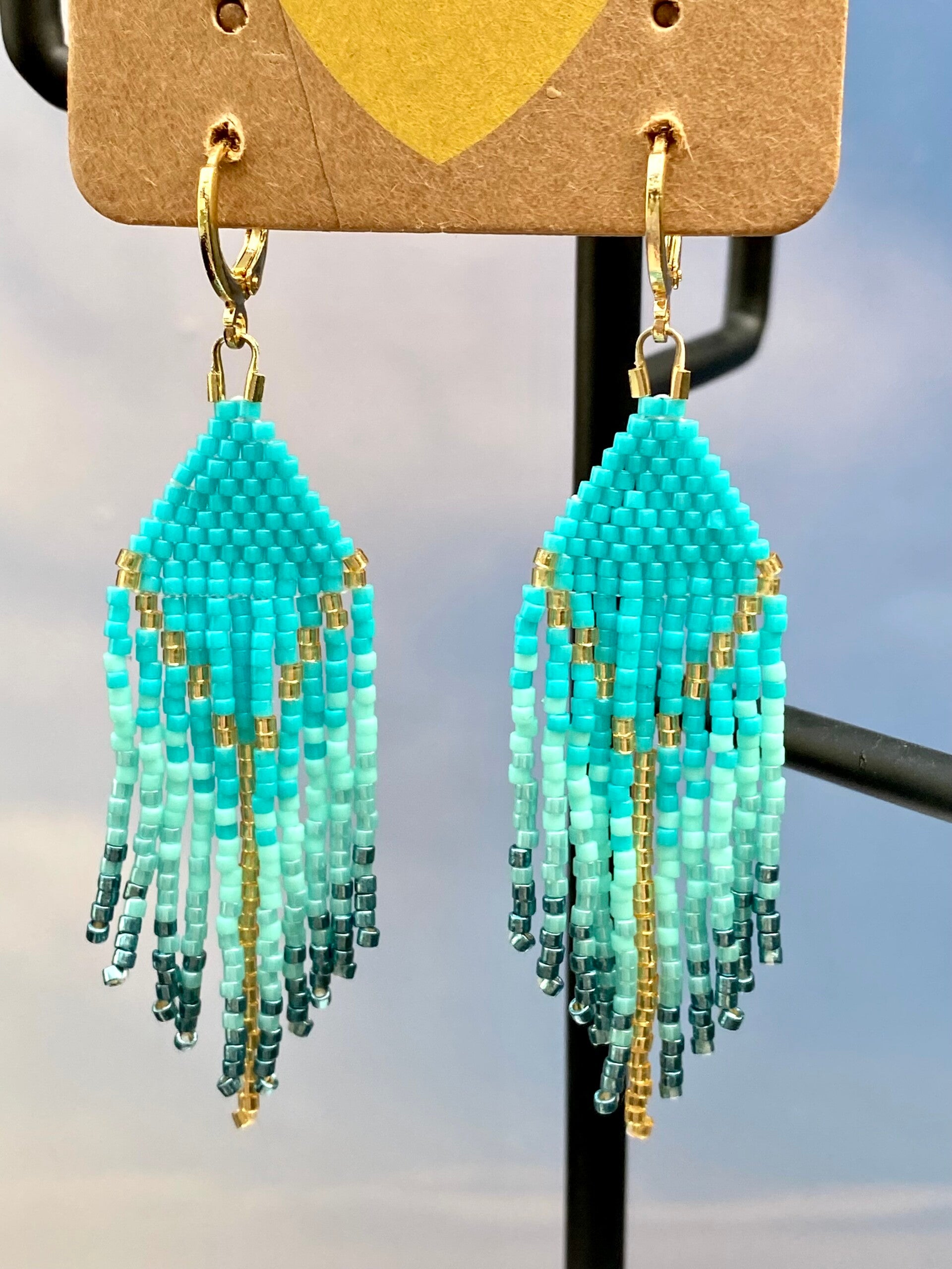 Prachtige franje oorbellen gemaakt van de hoogwaardige glas kralen van het merk Miyuki.