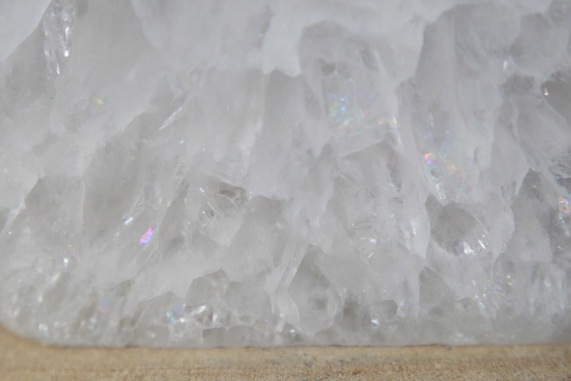 Agaat druzy vlam groot. De voor en achterkant zijn beide erg mooi. Met regenboogjes en insluitsels.