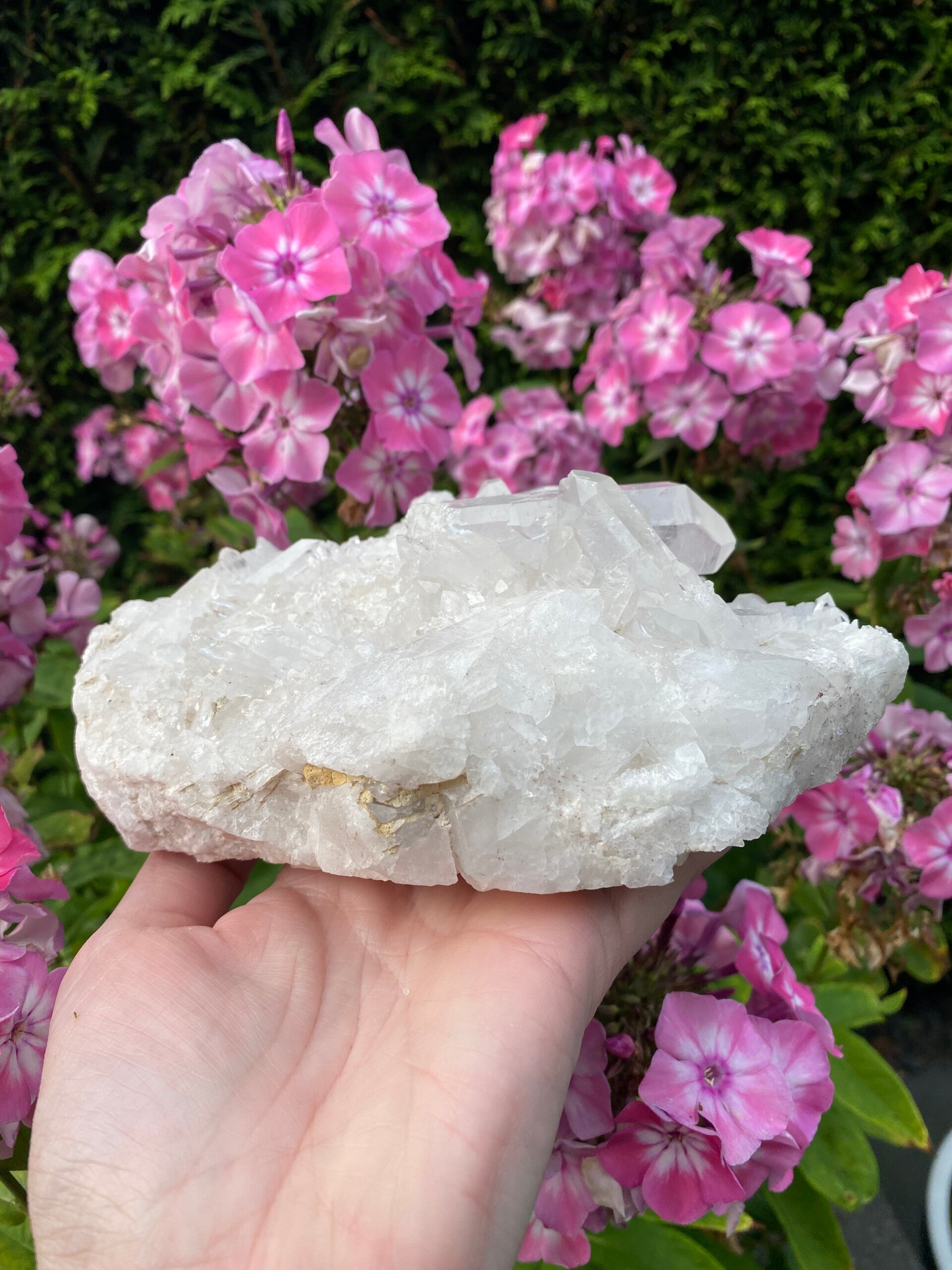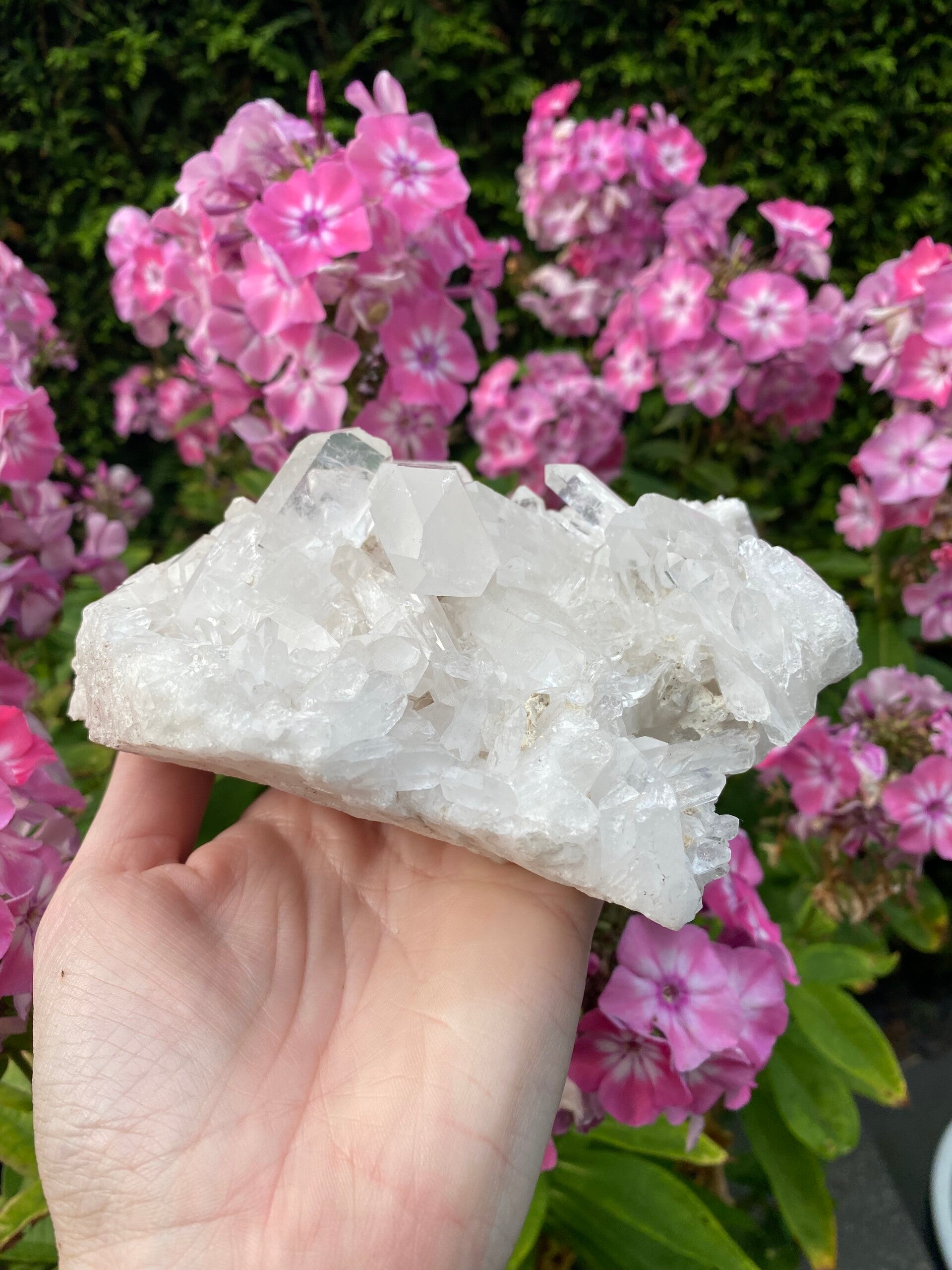 Prachtig mooi liggend stuk groot bergkristal cluster.