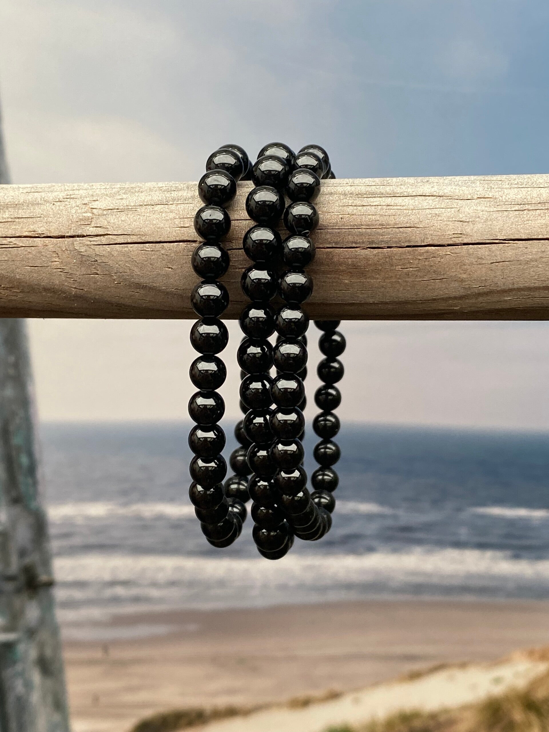 Zwarte obsidiaan armband, 6mm kraal. Elastiek.