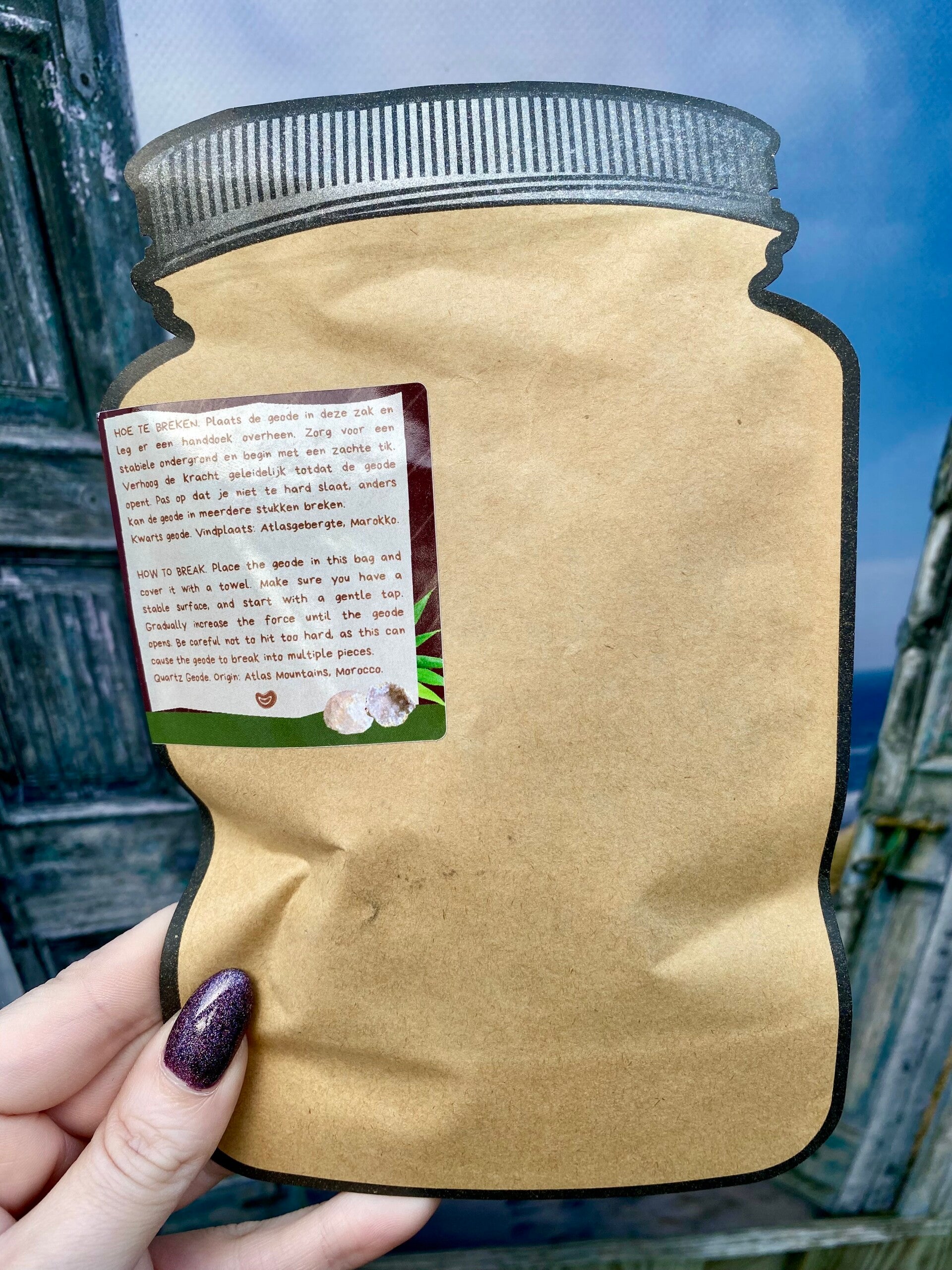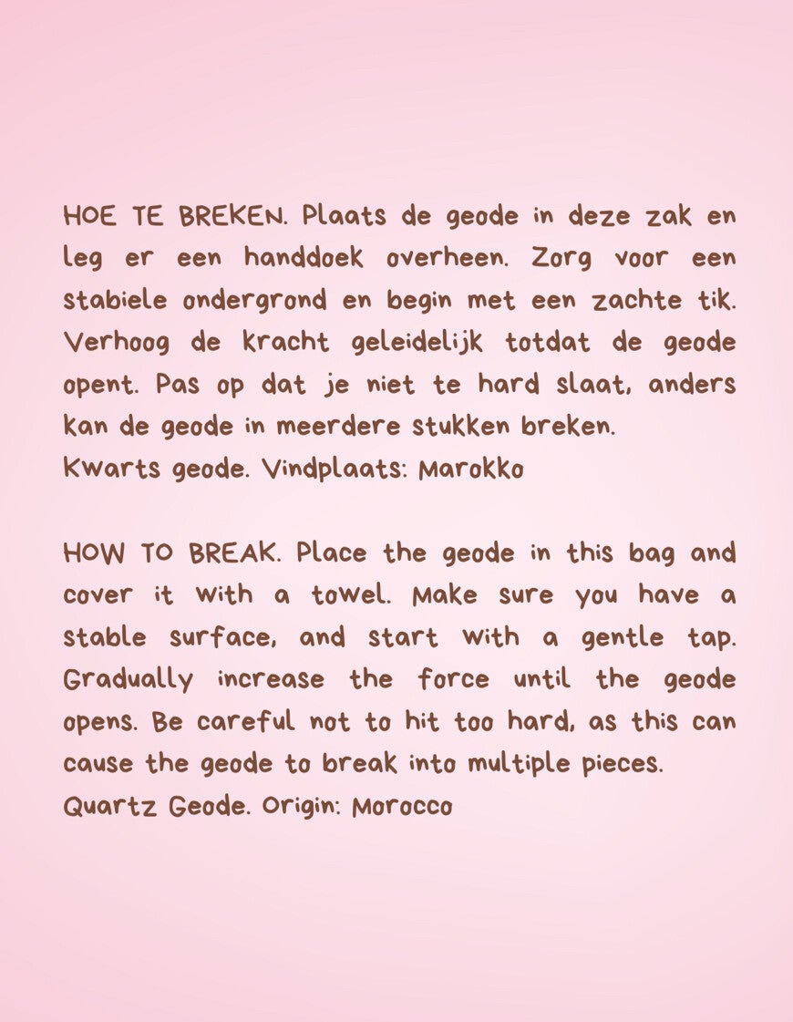 Leuk cadeautje voor jezelf of om weg te geven : kraak je eigen geode. Altijd al eens je eigen geode willen kraken? Dat kan nu. Er zit een Marokkaanse geode in.