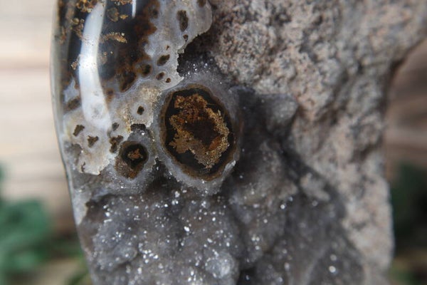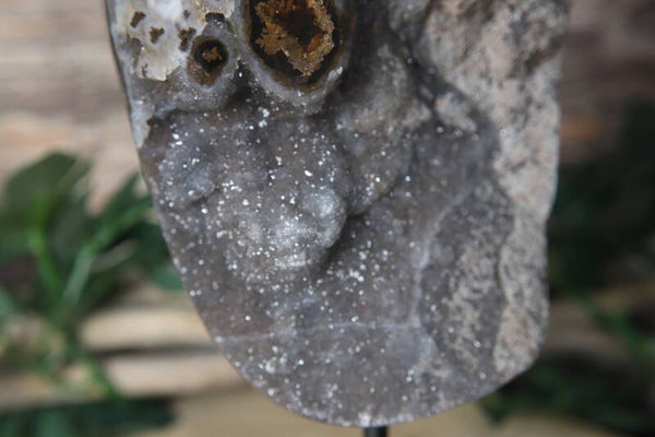 Agaat op standaard.De maten zijn +/- 23cm hoog en deze weegt 1570gr
