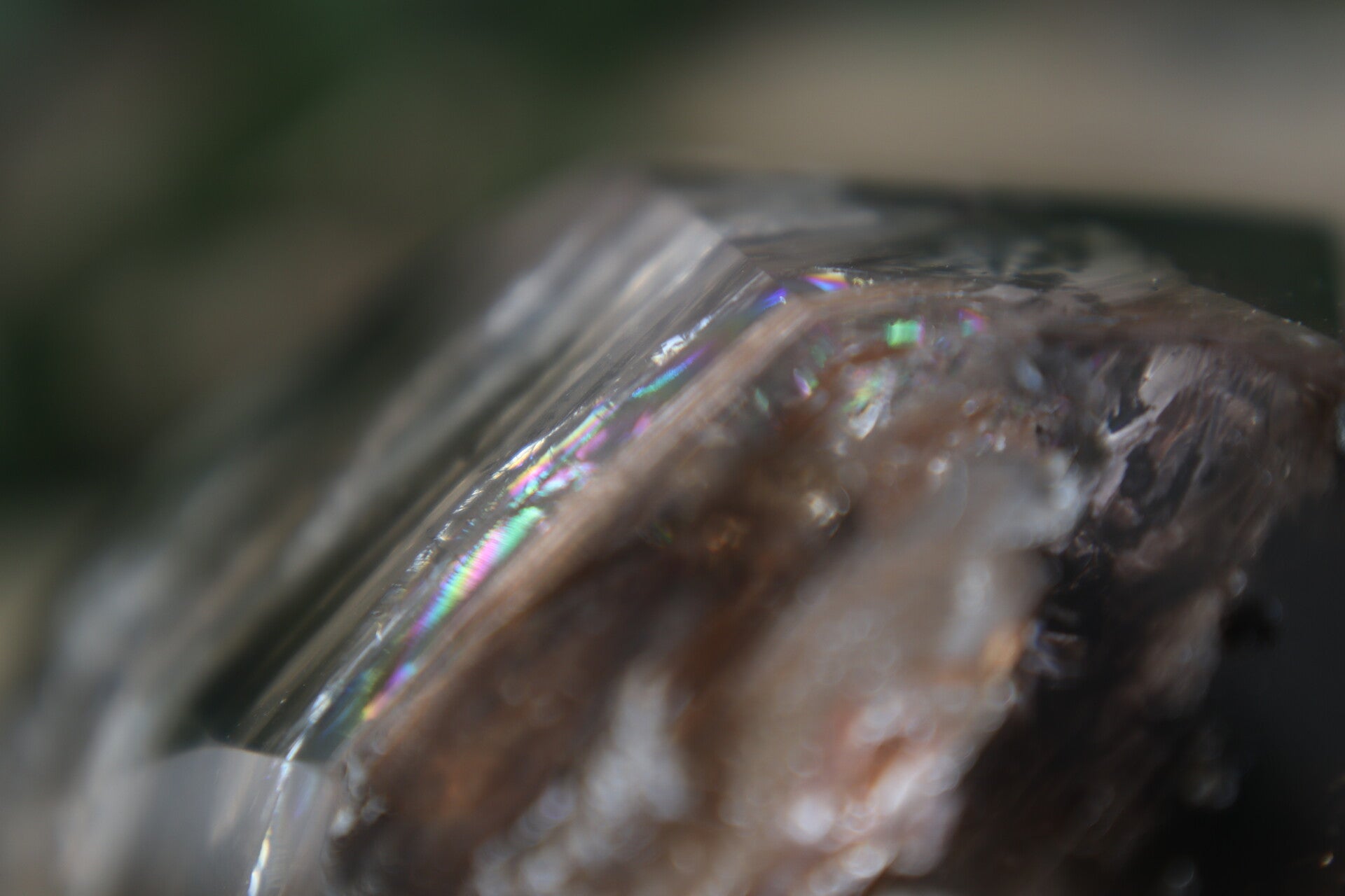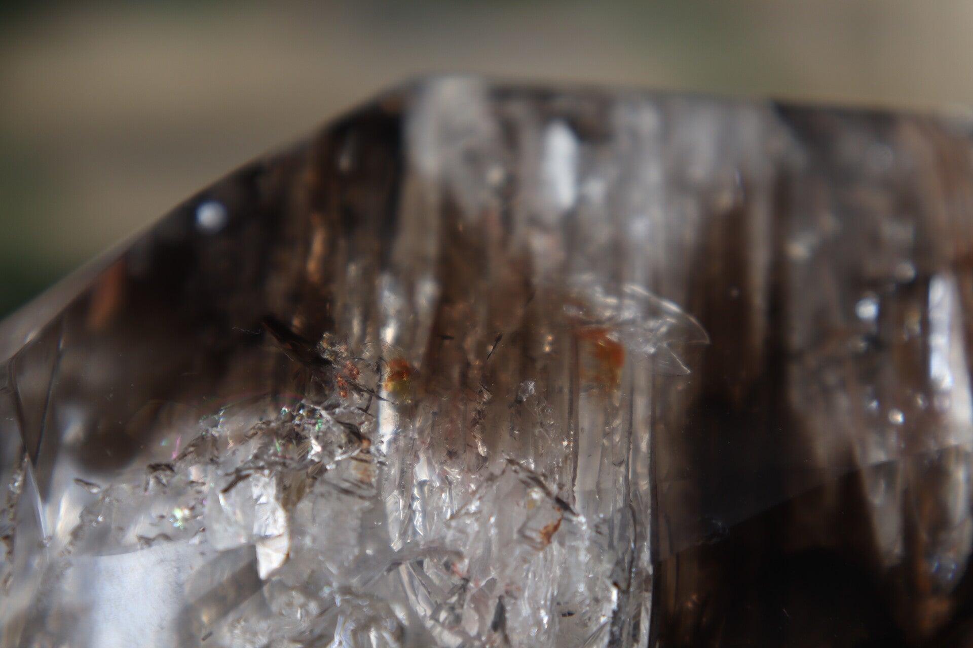 Elestiaal kwarts gepolijst. Met prachtige regenboogjes en insluitingen.