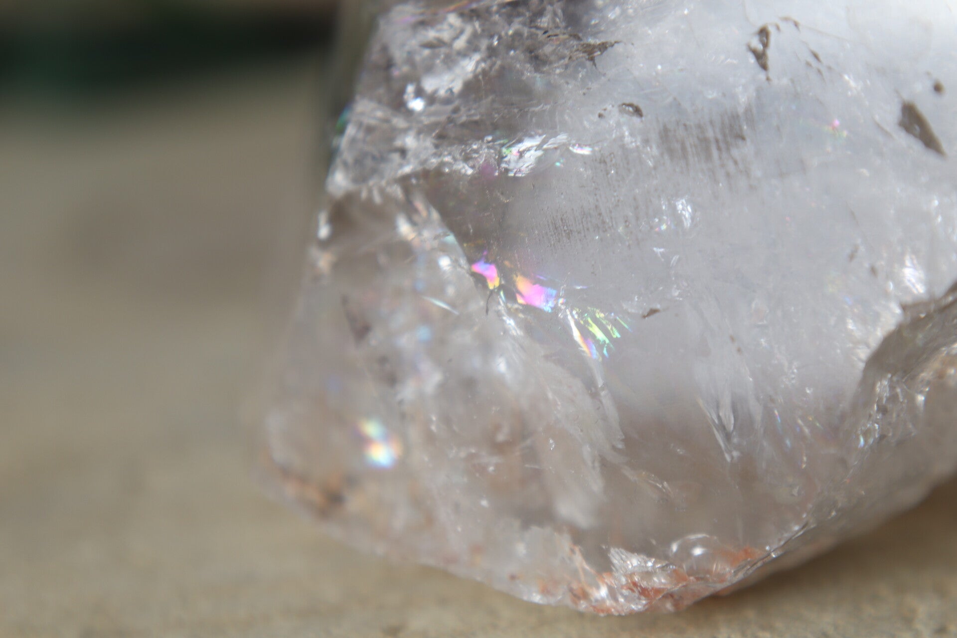 Elestiaal kwarts gepolijst. Met prachtige regenboogjes en insluitingen.