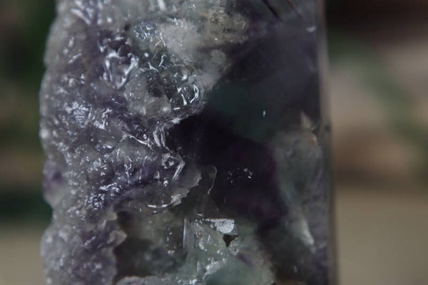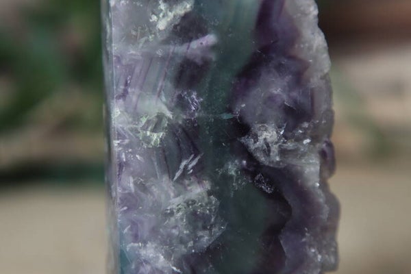 Fluoriet toren met ruwe kant.De maten zijn +/- 8x3,5x2,5cm en deze weegt 160gr