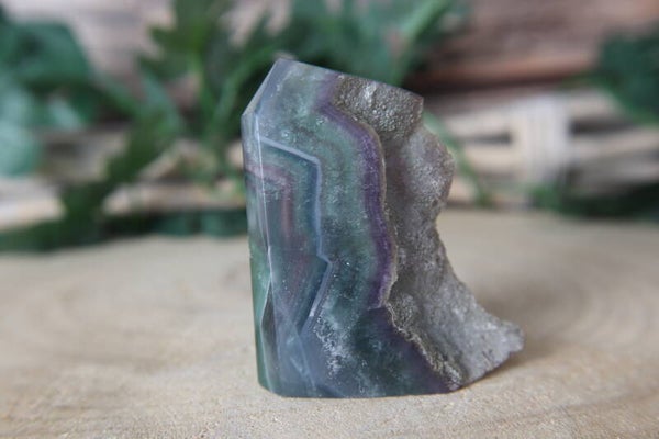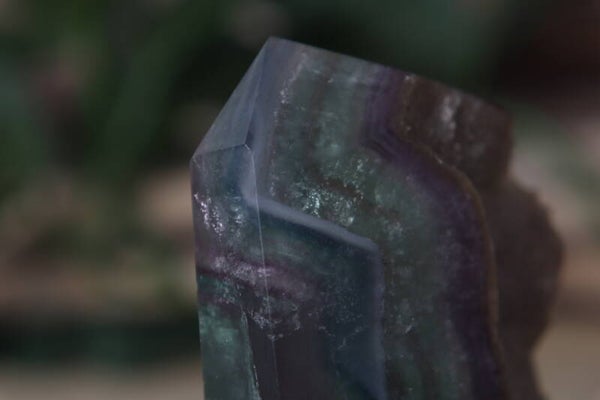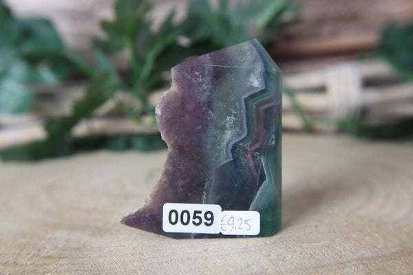Fluoriet toren met ruwe kant.De maten zijn +/- 7x5x2cm en deze weegt 105gr
