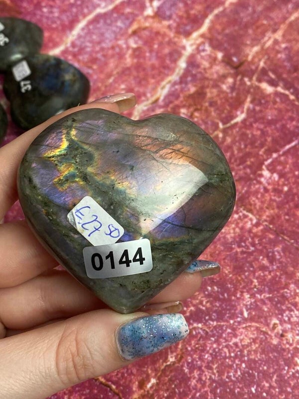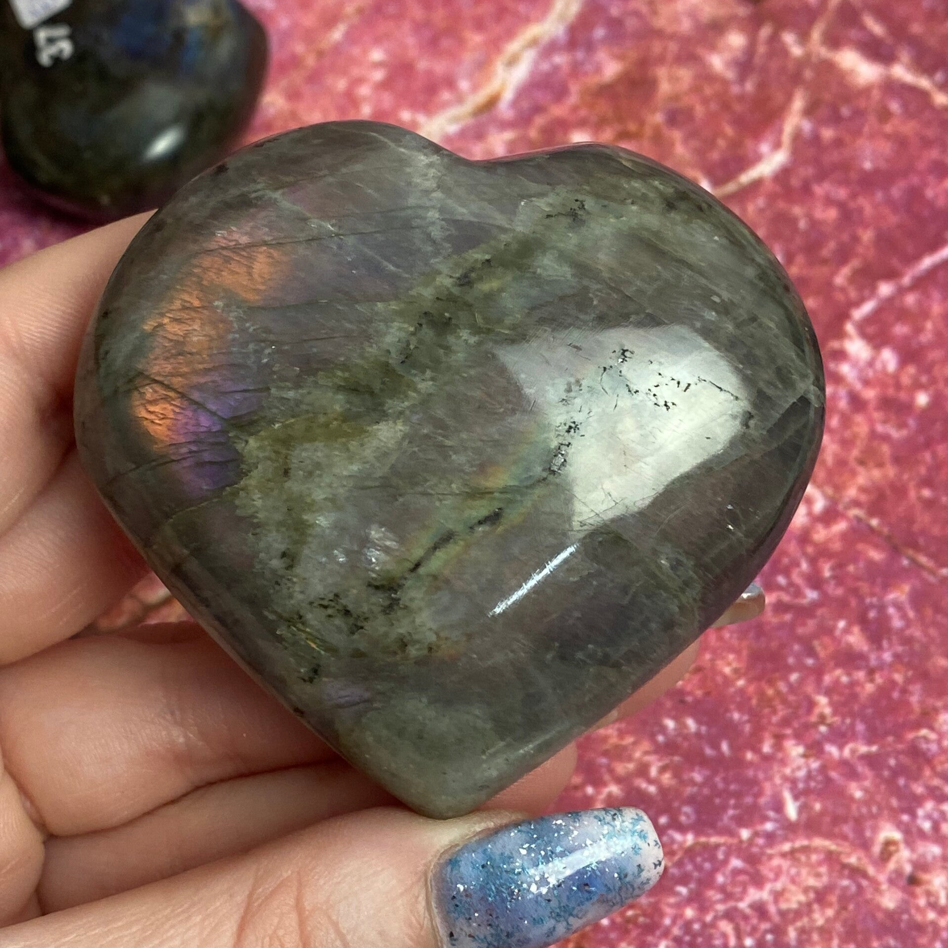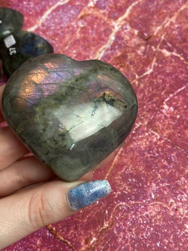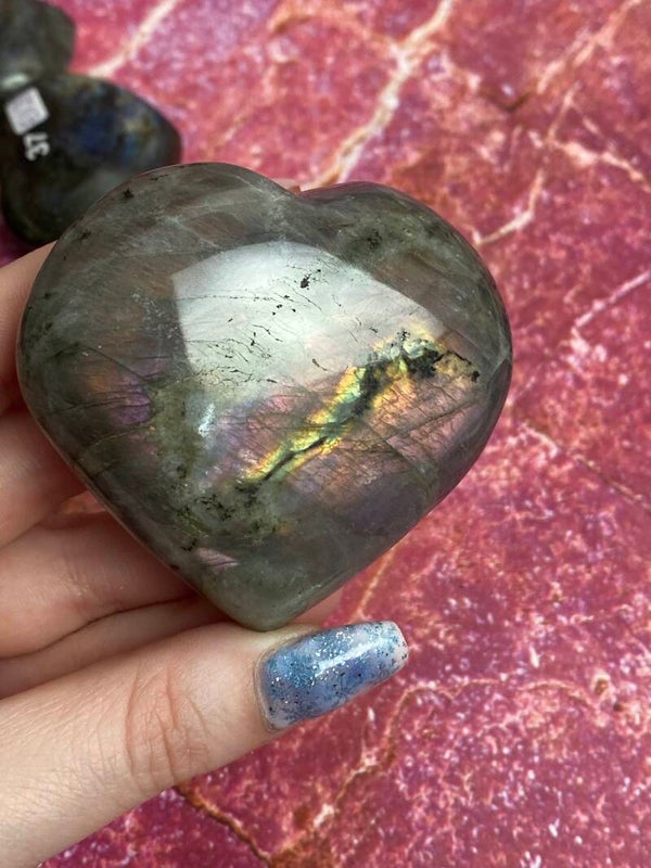 Labradoriet hart met prachtige mermaid flashDe maten zijn +/- 7x7x2cm en deze weegt 155gr