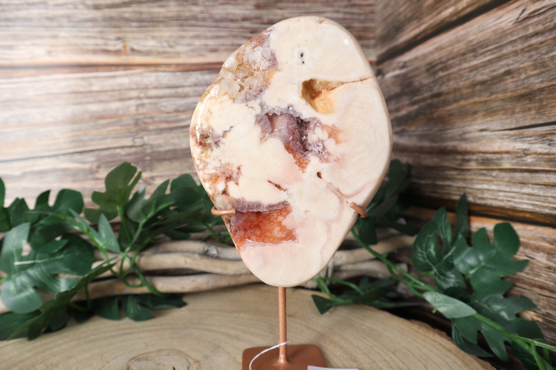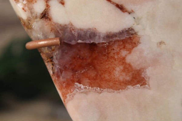 Roze amethist is chalcedoon met kwarts. De roze kleur komt door oa de hematiet. Het kan ook paarse amethist, agaat en jaspis bevatten.