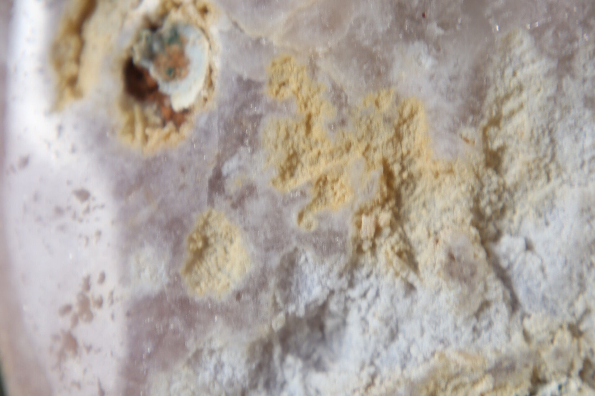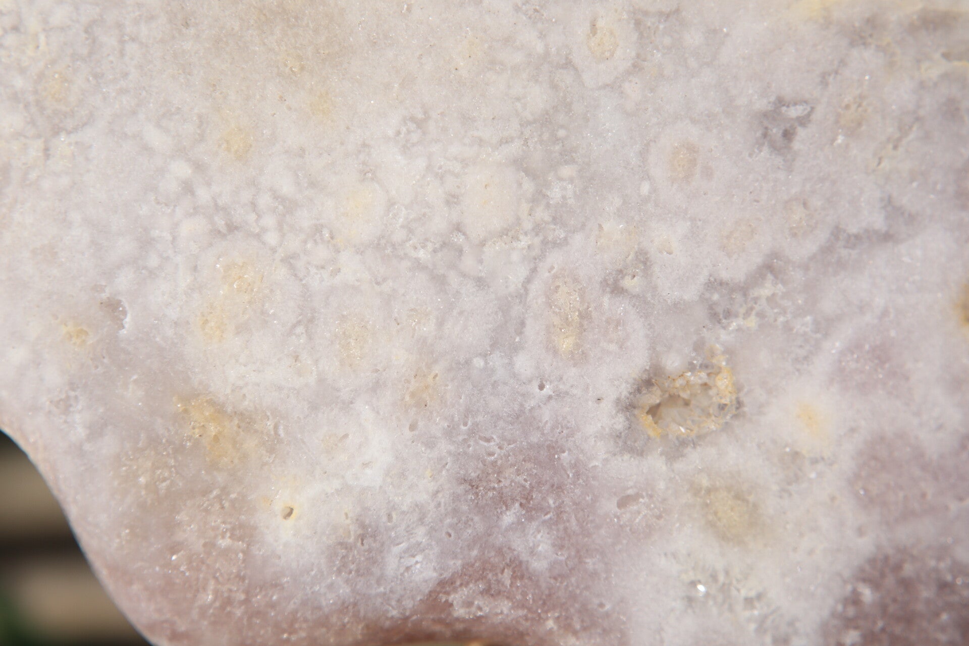 Roze amethist is chalcedoon met kwarts. De roze kleur komt door oa de hematiet. Het kan ook paarse amethist, agaat en jaspis bevatten.