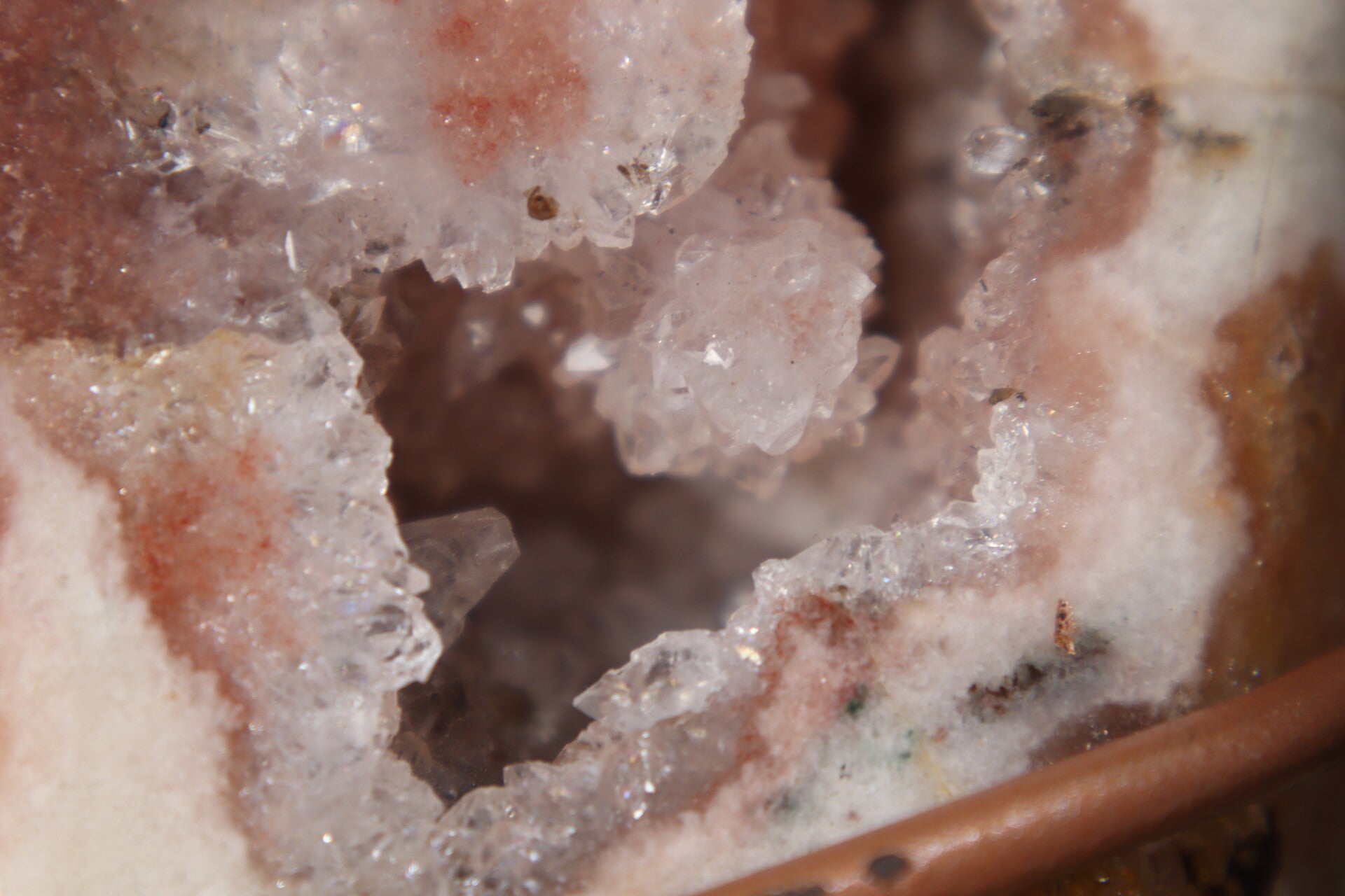Roze amethist is eigenlijk de handelsnaam voor chalcedoon met een mooie roze tint maar waarom noemen we het roze amethist terwijl het niks met amethist te maken heeft?