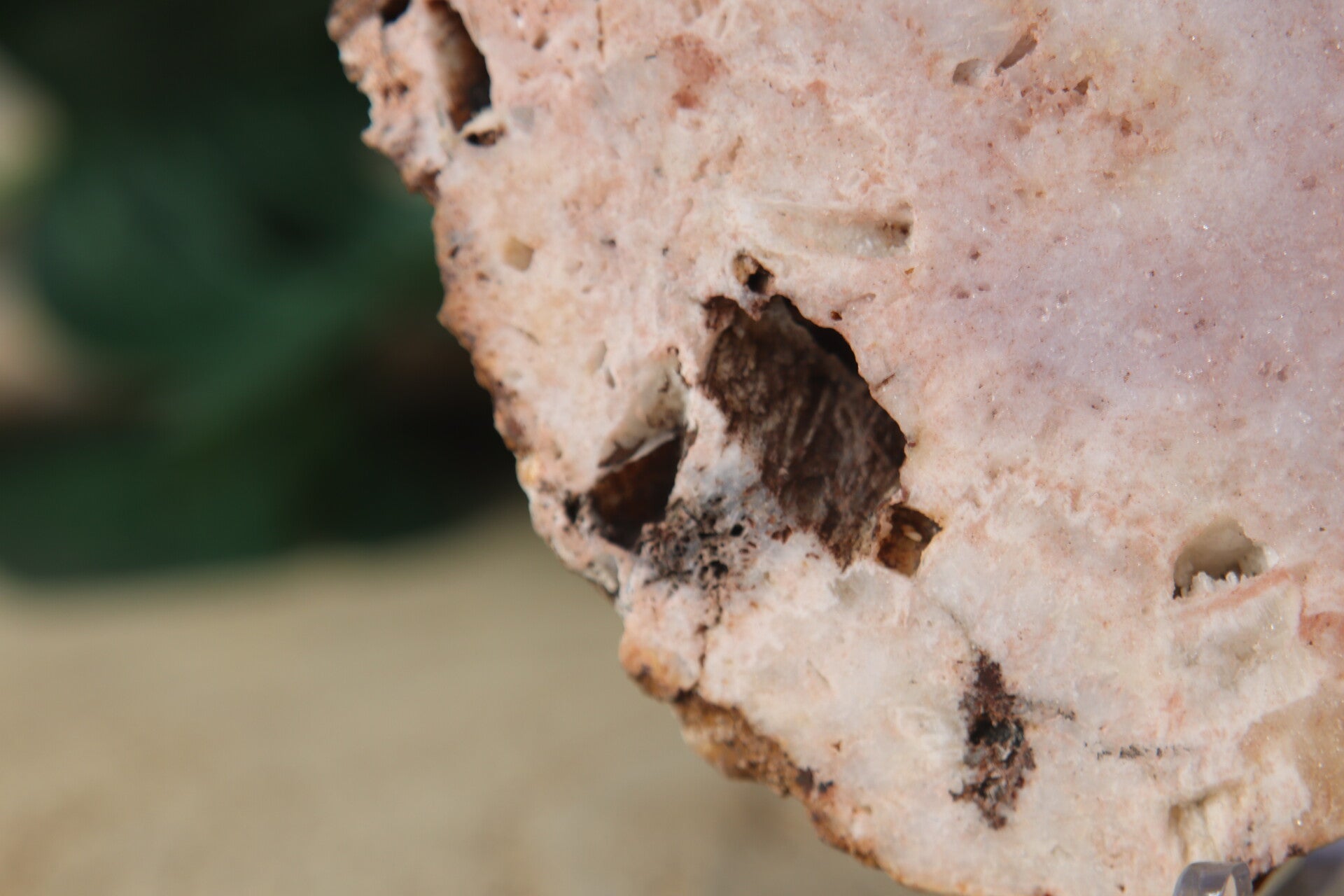 Roze Amethist Plak – Gepolijste Voorkant & Ruwe Achterkant (Inclusief Standaard)