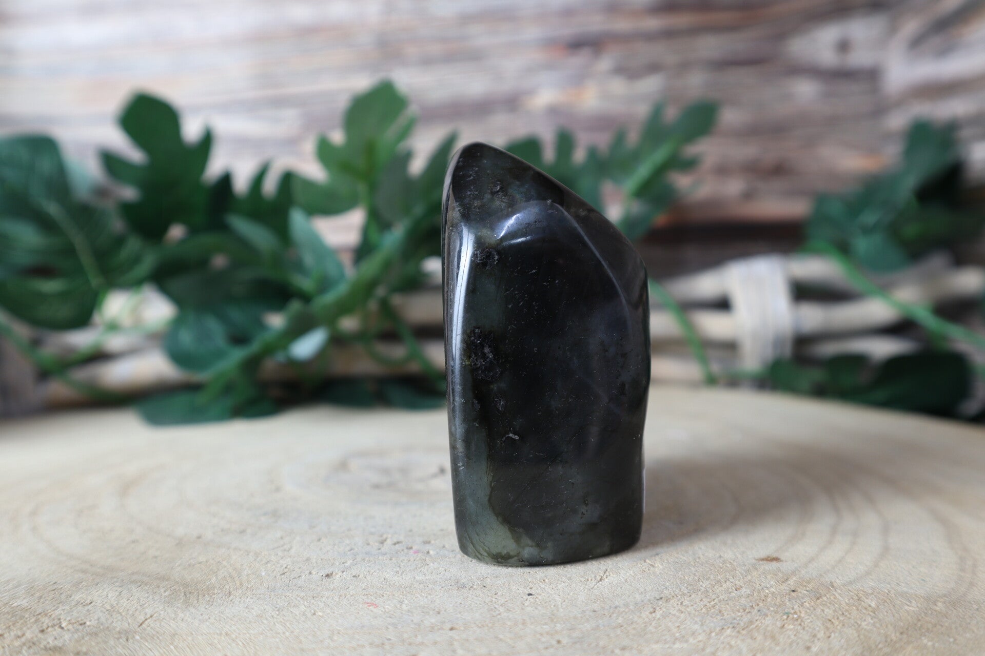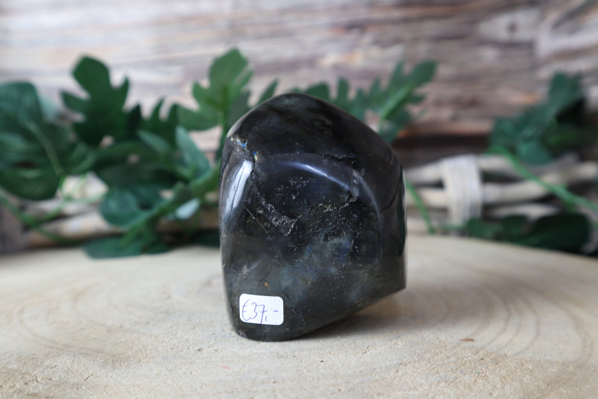 Deze bijzondere labradoriet sculptuur uit Madagaskar straalt mysterie en magie uit. Met zijn prachtige paarse flash trekt hij direct de aandacht en is het een echte eyecatcher in elke collectie. De steen is met zorg gepolijst zodat de natuurlijke schittering prachtig naar voren komt.