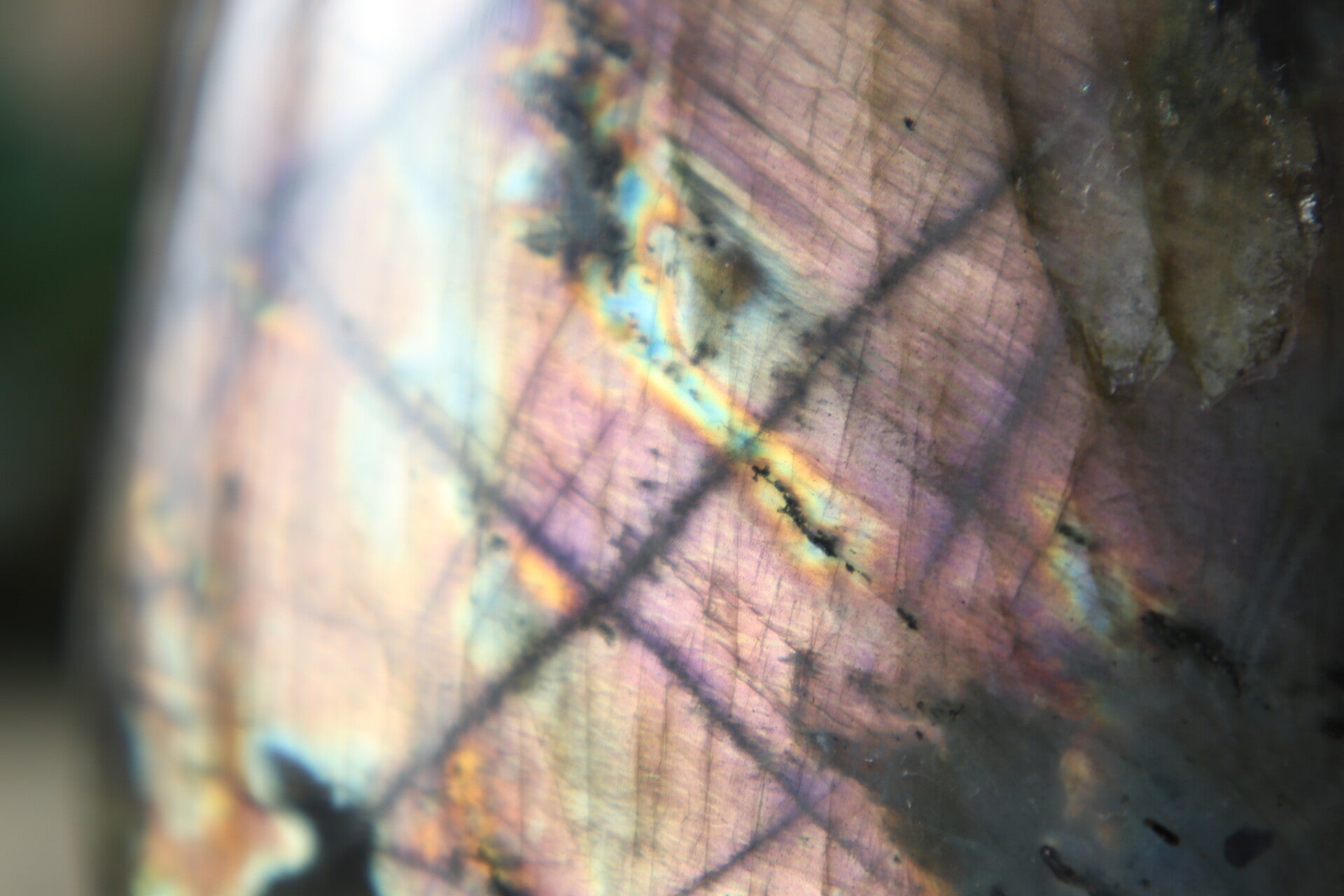 Labradoriet Sculptuur – Met Oranje-Roze Flash | Herkomst: Madagaskar