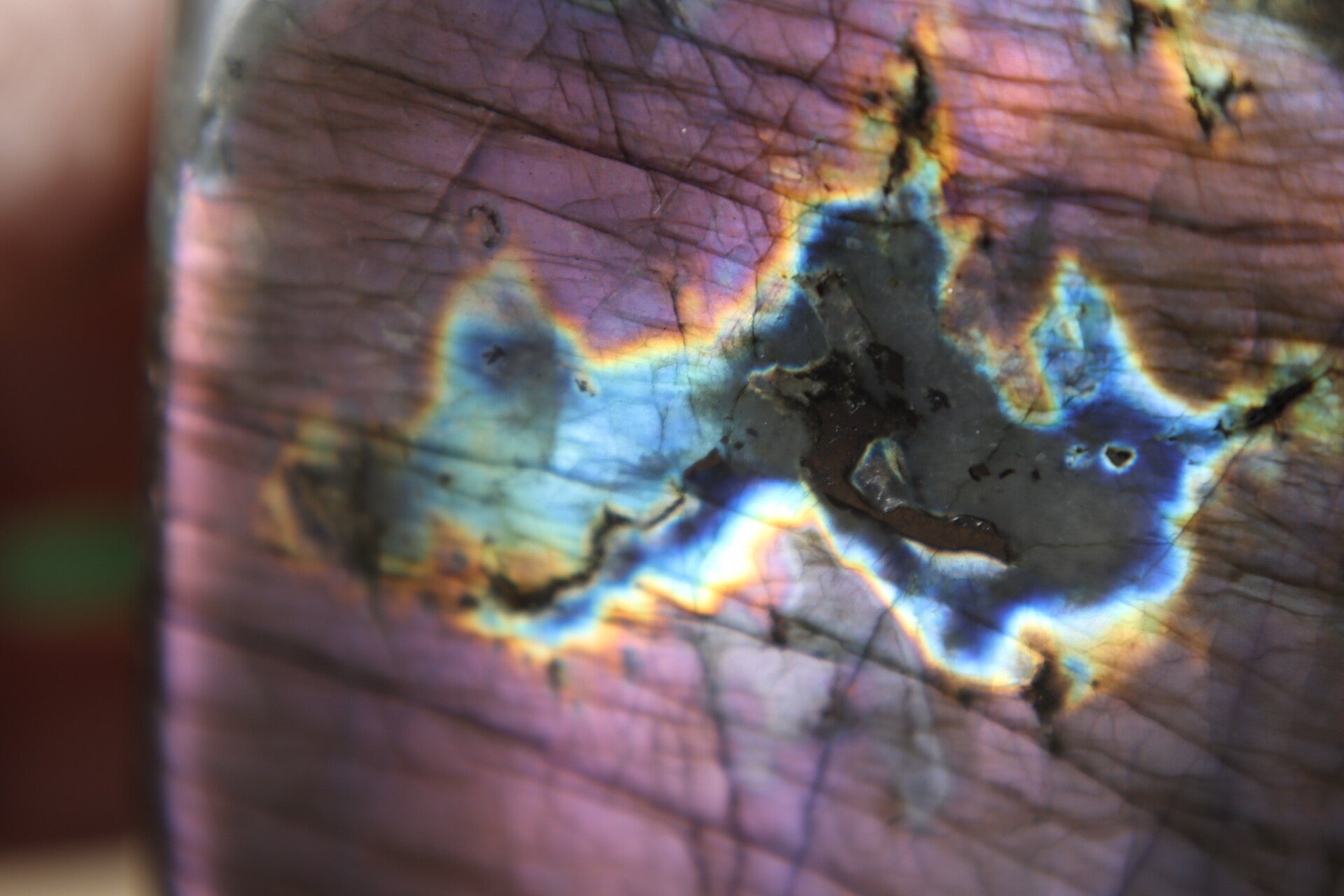 Labradoriet Sculptuur – Paars/Oranje Flash (Met Kleine Beschadiging)