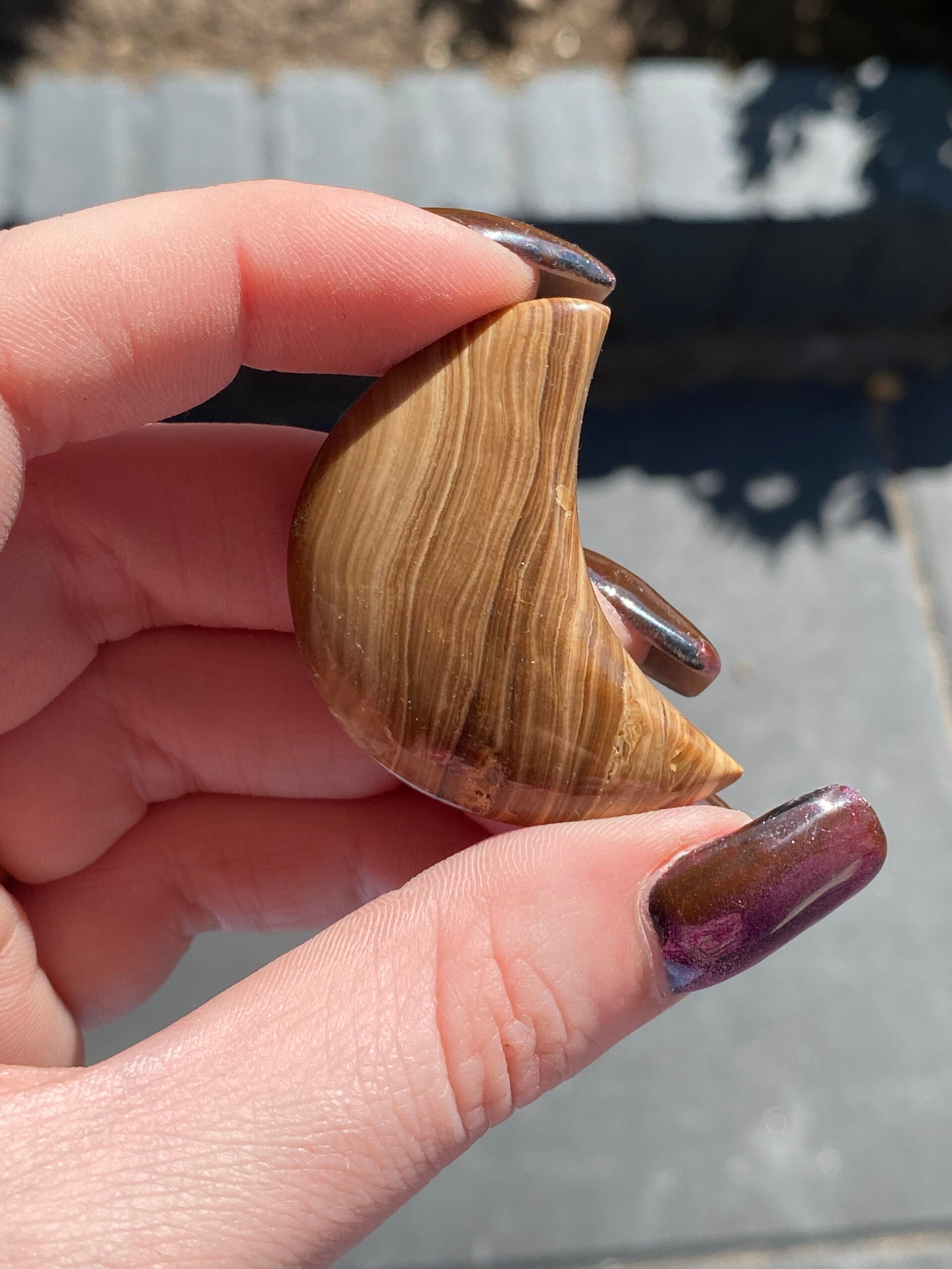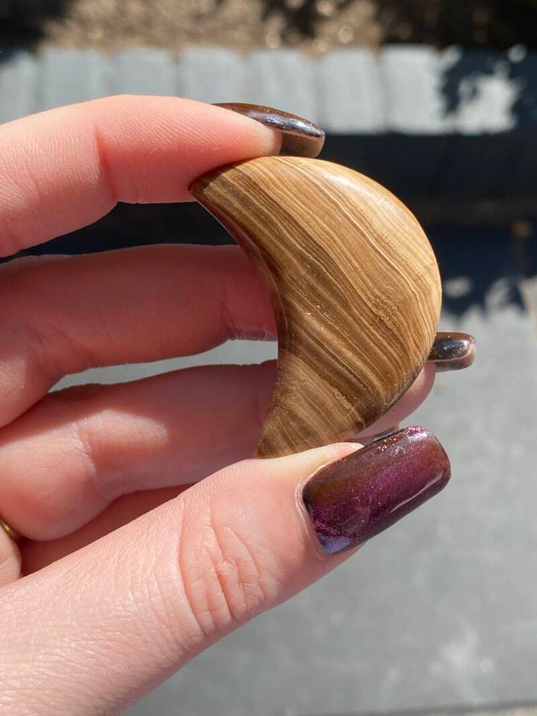 Aragoniet maan nr 12 Afmetingen (±) 4x2,5cm. Gewicht: 18gr.