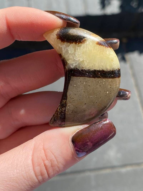 Septarie maan nr 15 Afmetingen (±) 4x2cm. Gewicht: 23gr.