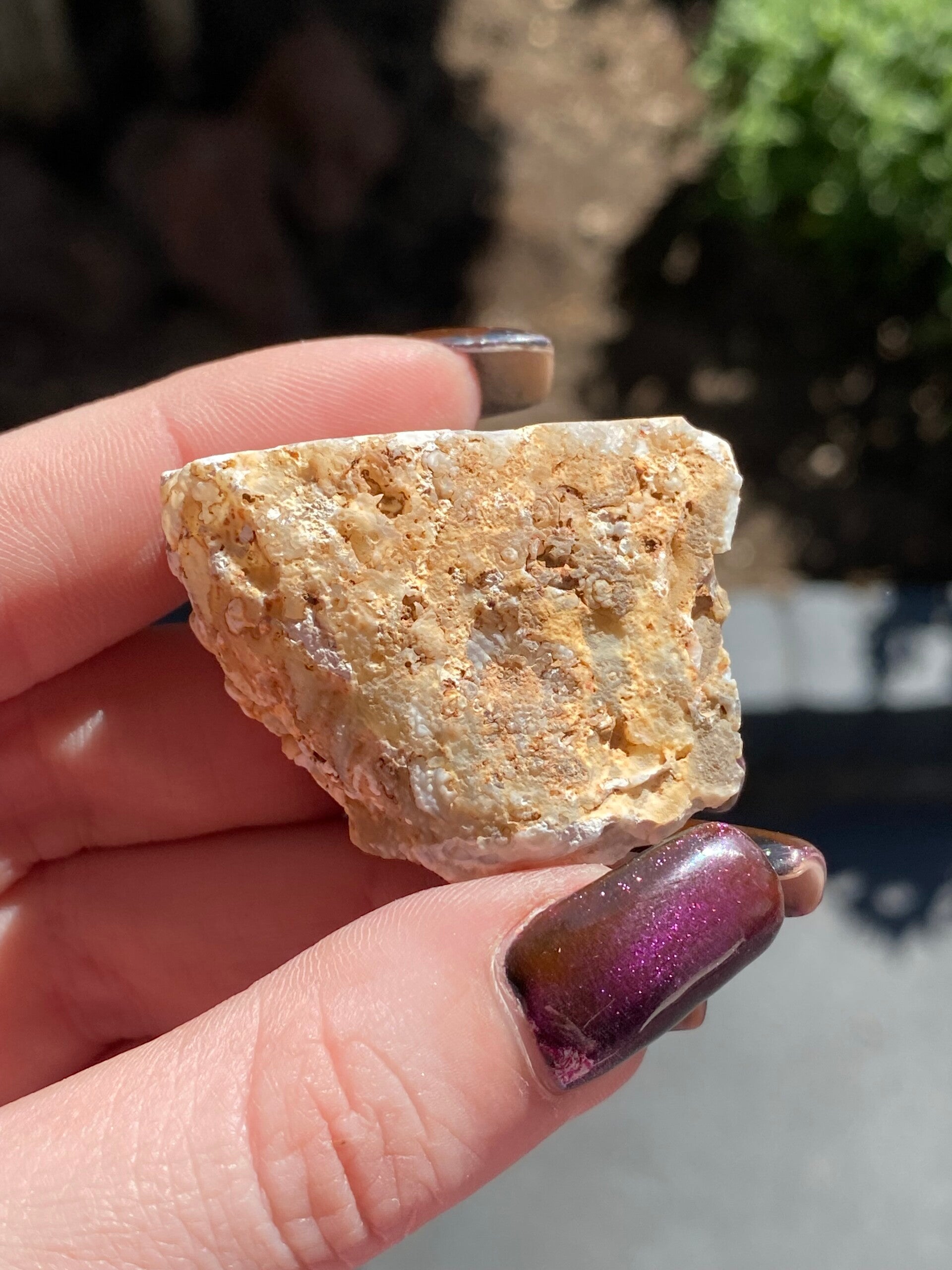 Agaat geode 4. Afmetingen (±) 4x2,2x3cm. Gewicht: 27gr.