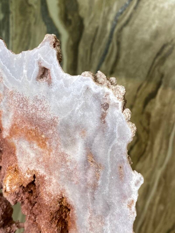 Maak een krachtig stijlstatement met deze indrukwekkende roze amethist op standaard. Deze unieke slab is niet alleen een prachtige decoratie, maar straalt ook kalmte en zachtheid uit. Perfect voor in je woonkamer, praktijkruimte of werkplek.