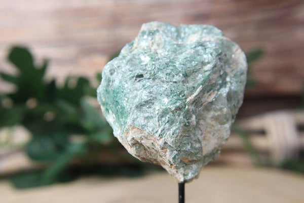 Deze schitterende ruwe fuchsiet op metalen standaard is een opvallend en krachtig decoratiestuk. De groene tinten met natuurlijke glinstering maken dit mineraal een echte blikvanger. Met een hoogte van ca. 10,5 cm inclusief standaarden een gewicht van 147 gram is dit een prachtig formaat voor je vitrinekast of werkplek.