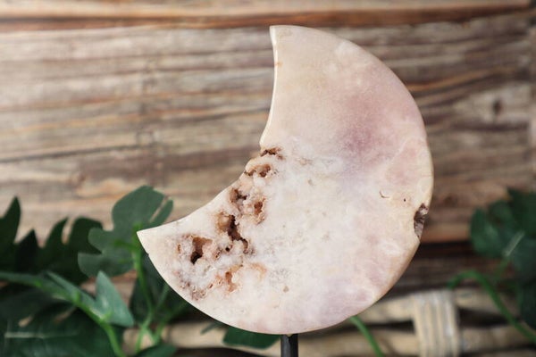 Deze prachtige Roze Amethist maan op standaard combineert schoonheid met spirituele betekenis. De maanvorm staat symbool voor intuïtie, vrouwelijke kracht en innerlijke balans. Een bijzonder decoratief én energetisch object voor in huis.