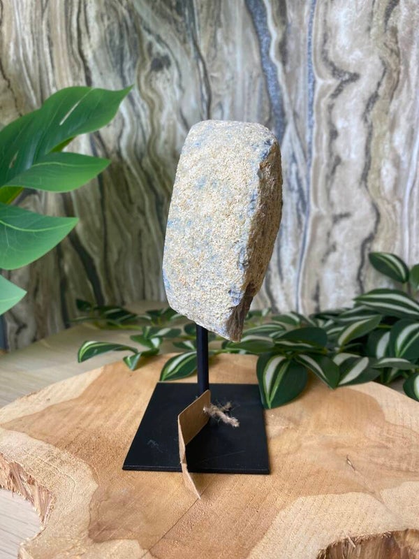 Deze prachtige Agaat op standaard weegt 860 gram en heeft een totale hoogte van 17 cm, inclusief standaard. Met zijn natuurlijke patronen en zachte blauwe kleurtinten is dit stuk een echte blikvanger in elk interieur.