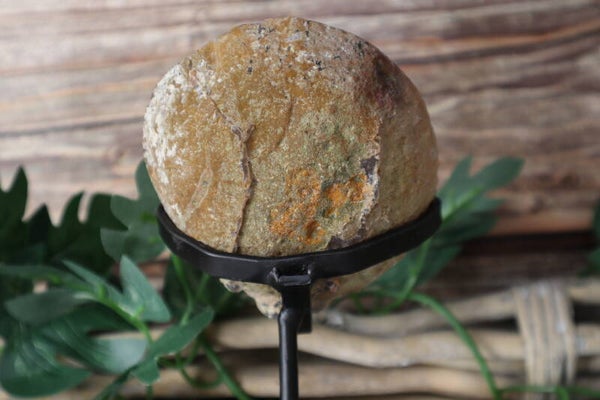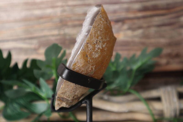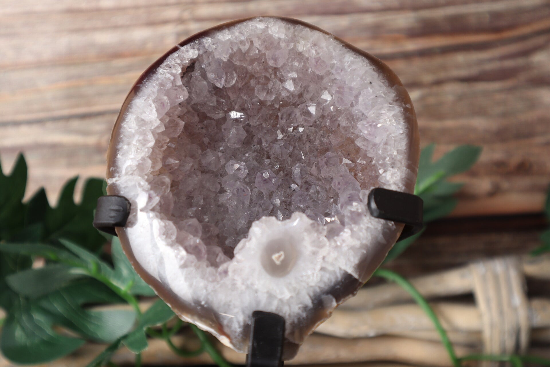 Dit bijzondere stuk agaat is een waar natuurkunstwerk. Met zijn schitterende kristallen en bloemachtige patroon trekt het direct de aandacht. Het stuk wordt geleverd op een stevige standaard, waardoor het perfect is als decoratie of spiritueel display.
