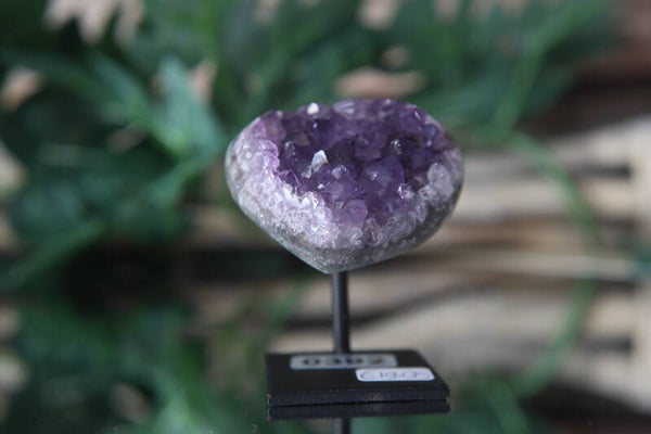 Dit prachtige amethist hart op pin is een schitterend natuurproduct afkomstig uit Brazilië. De diepe paarse tinten en natuurlijke kristalstructuur maken dit stuk een waardevolle toevoeging aan elke edelsteen- of kristalcollectie. Het hart wordt geleverd op een elegante pin, waardoor het ideaal is als decoratief object in huis, op een altaar of in een vitrinekast.