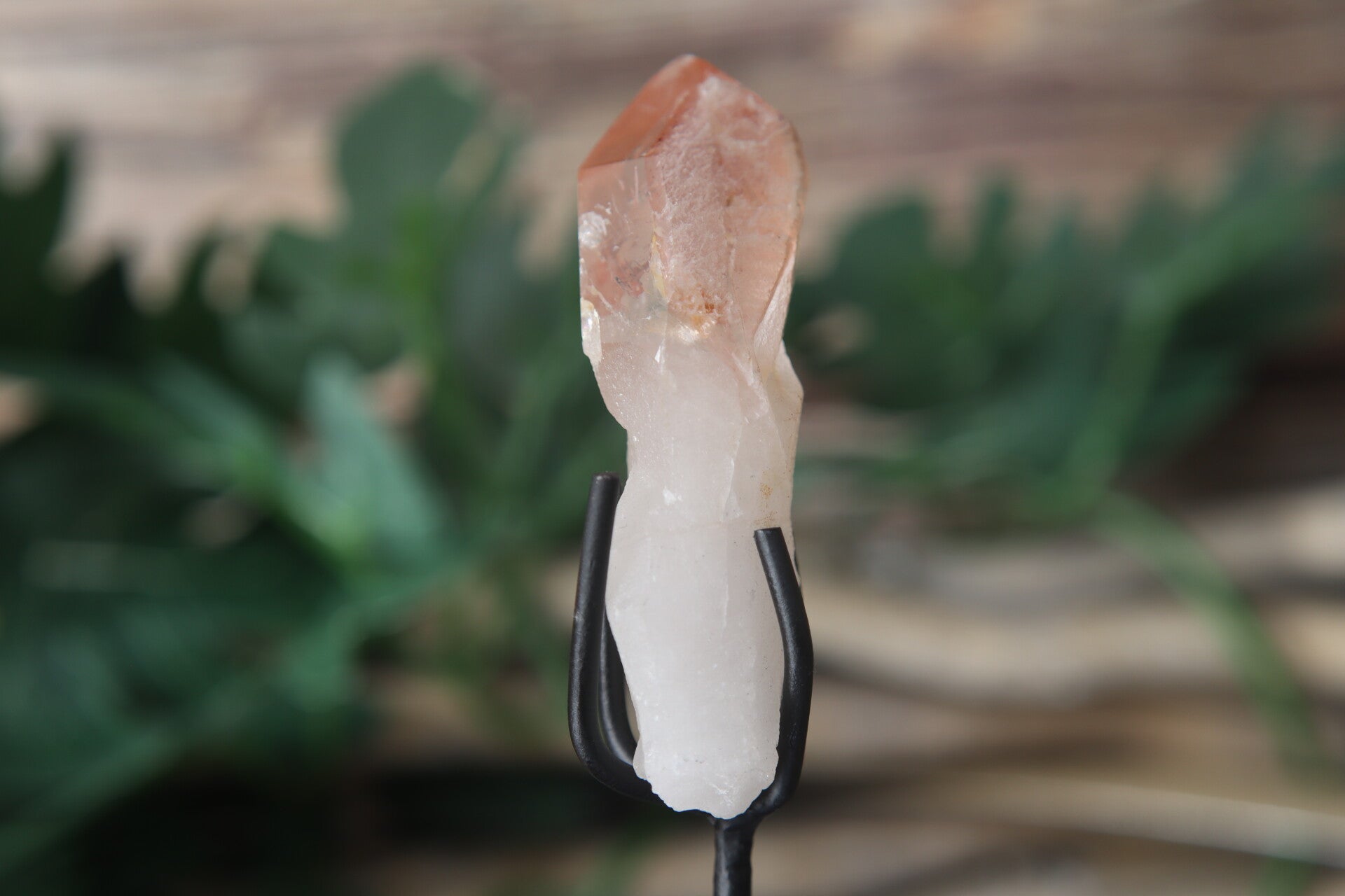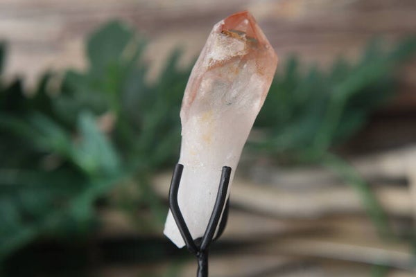 Dit Pink Scarlett Lemurian puntje is een prachtig, uniek stuk uit Brazilië met zachte roze tot warme tinten en de karakteristieke groeilijnen die Lemurian kristallen zo herkenbaar maken. Geplaatst op een metalen standaard is het direct een elegante blikvanger voor in huis, op een altaar of in een kristalcollectie.