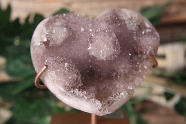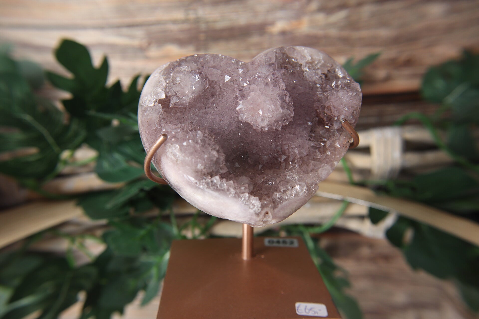 Roze Amethist Hart op Standaard #0452 – Mooi en Zwaar Kristal uit Brazilië