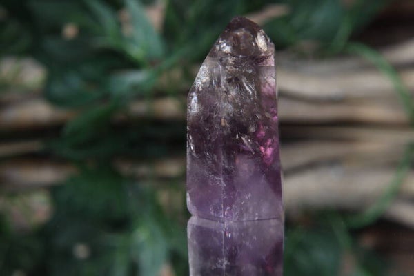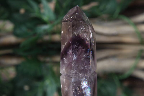 Deze phantom toren is een waar juweel voor liefhebbers van bijzondere kristallen. Het heldere kristal toont een zachte paarse kleur, prachtige insluitingen en subtiele regenboogjes die verschijnen bij de juiste lichtinval. Met zijn afmeting van 6 x 3,5 x 2 cm en gewicht van 98 gram is het een compact maar opvallend stuk.