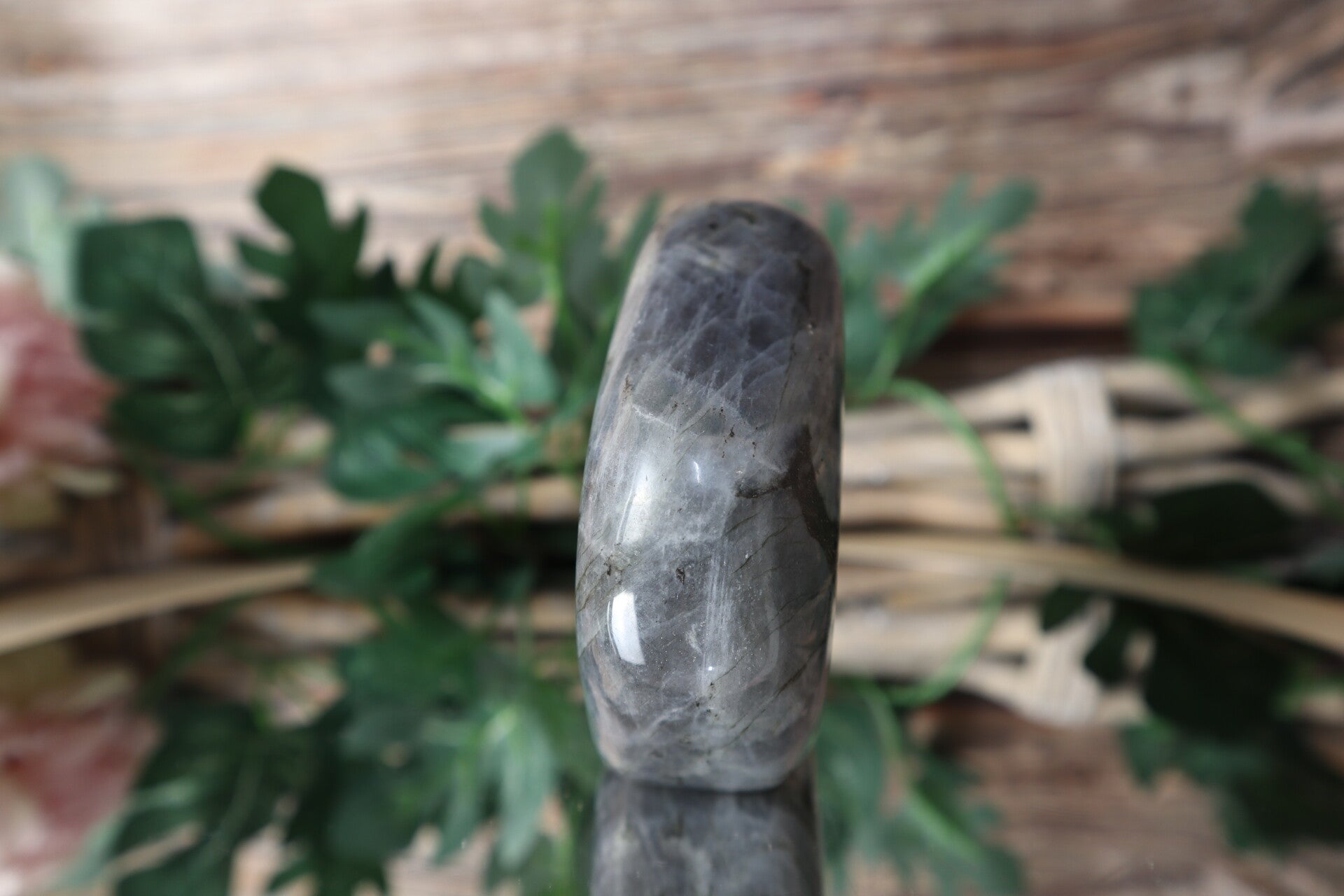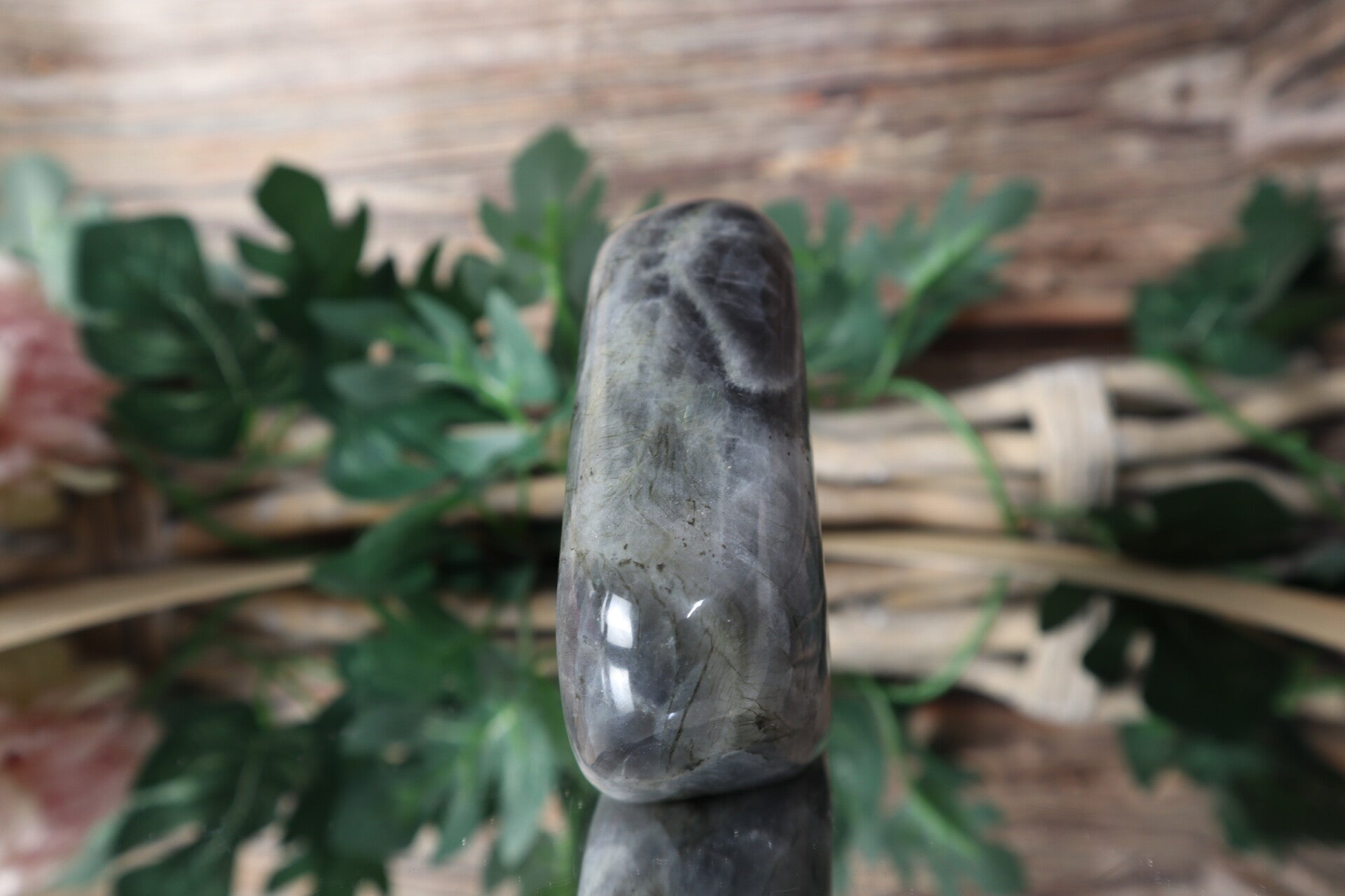 Labradoriet is een krachtige beschermsteen die negatieve energie weert en de aura zuivert. Het versterkt intuïtie, creativiteit en spiritueel inzicht, en helpt bij innerlijke transformatie.