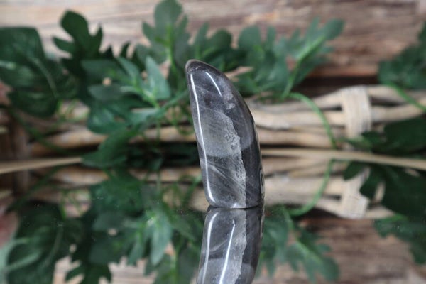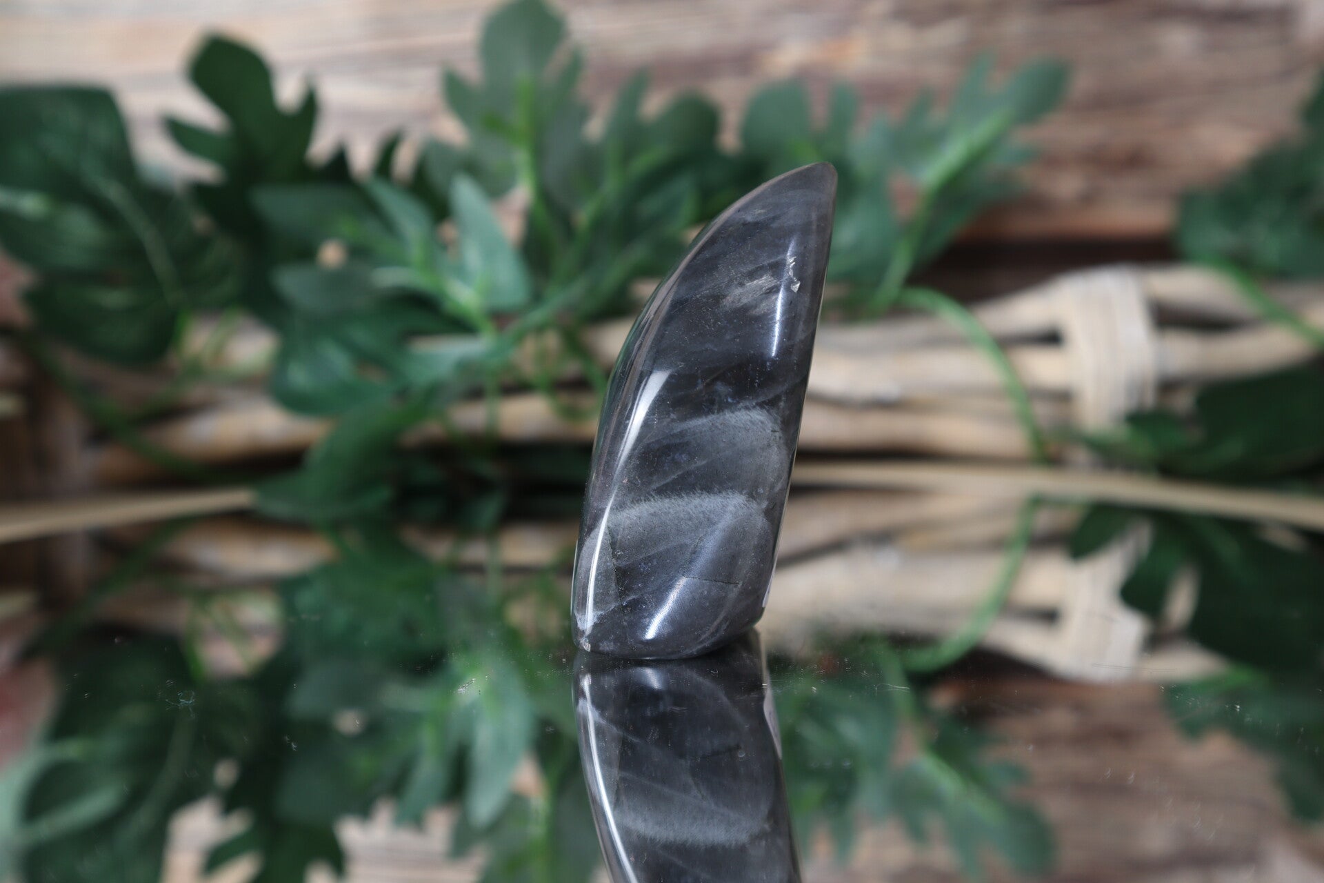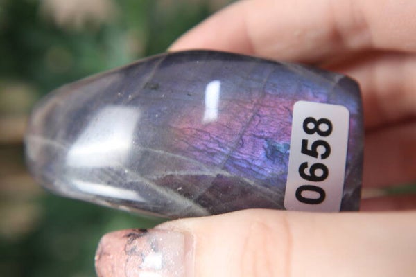 Labradoriet freeform sculptuur #0658 is een compact maar bijzonder krachtig stuk. Deze edelsteen toont een prachtig kleurenspel van paarse, roze en oranje flash, wat hem een magische uitstraling geeft.