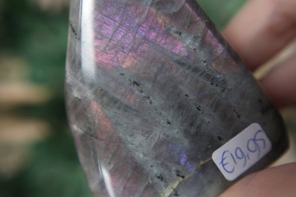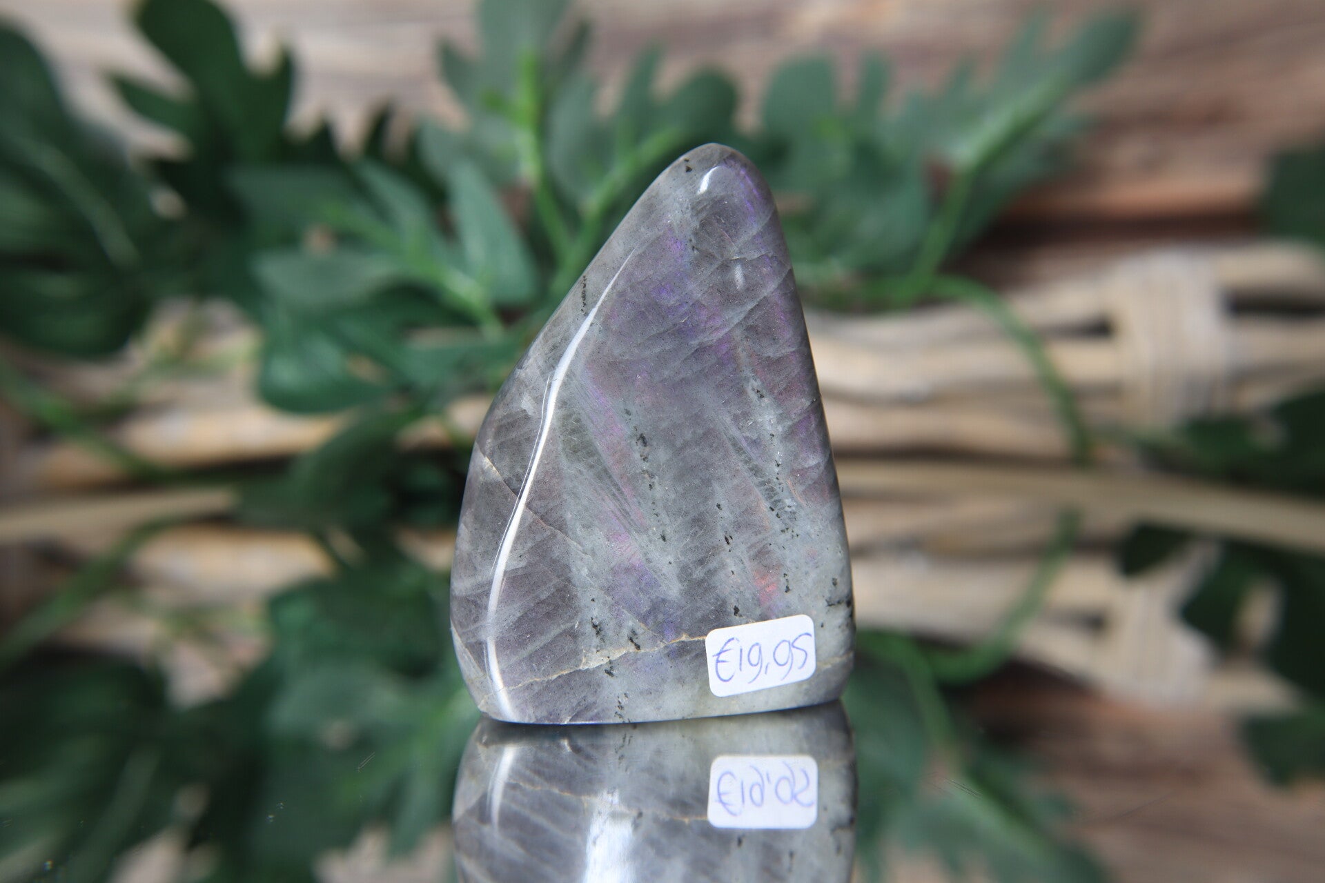 Labradoriet freeform sculptuur #0662 is een prachtig, handgeslepen stuk met een betoverende paars, roze en oranje flash. Door zijn formaat is hij ideaal als pronkstuk in een vitrinekast of als energieversterker in je werk- of meditatieruimte. De kleurflitsen veranderen prachtig met het licht, waardoor dit stuk steeds opnieuw je aandacht trekt.