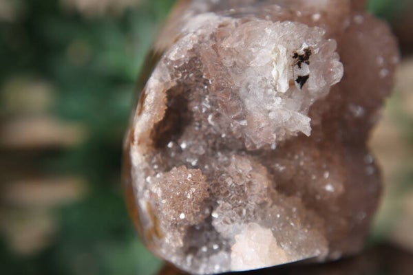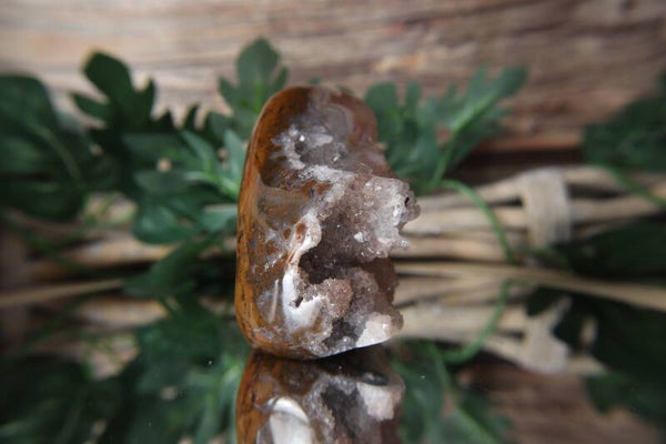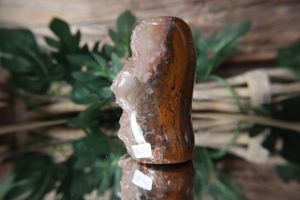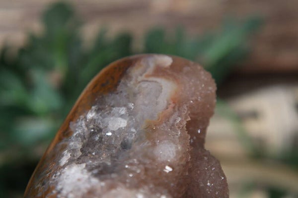 Agaat freeform #0549 is een uniek en stijlvol stuk met een prachtige druzy. De kristallen in de druzy glinsteren subtiel en geven dit freeform sculptuur een bijzondere uitstraling. De natuurlijke agaatstructuur maakt het tot een decoratief en energetisch waardevol object voor in huis of werkruimte.