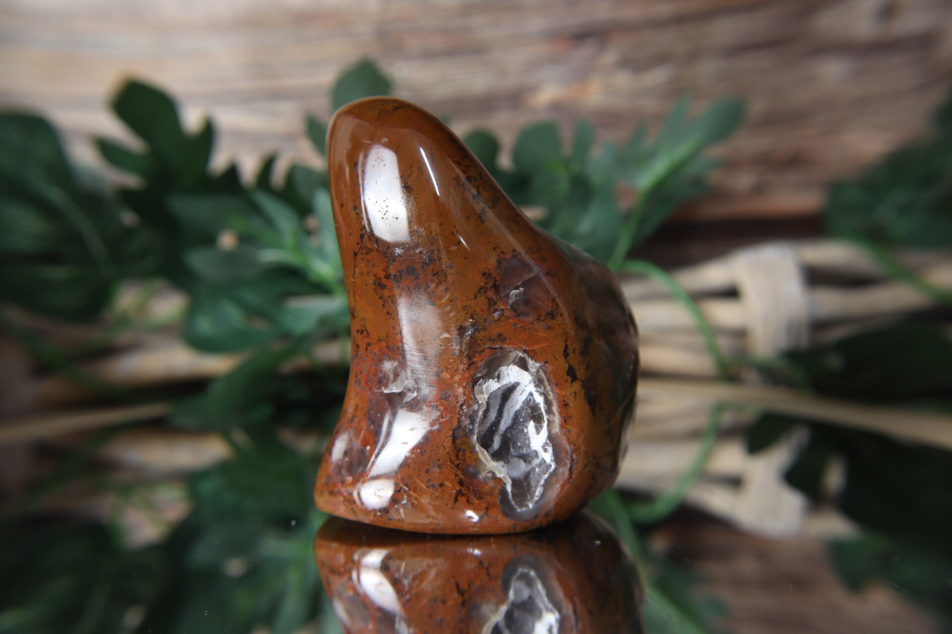 Agaat is een aardende en stabiliserende steen die rust en kalmte brengt. Het helpt bij het loslaten van spanningen, beschermt tegen negatieve invloeden en versterkt innerlijke kracht. Agaat ondersteunt bovendien concentratie, zelfvertrouwen en doorzettingsvermogen, waardoor het een fijne steen is voor persoonlijke groei en balans.