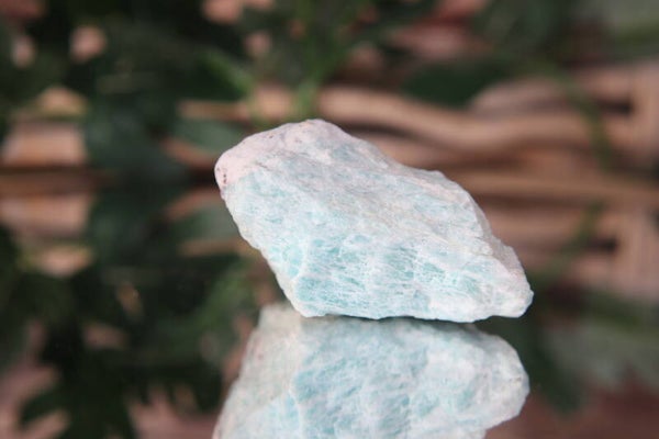 Dit ruwe stuk amazoniet heeft een mooie, robuuste uitstraling en laat de natuurlijke structuur van de steen goed zien. De onbewerkte vorm benadrukt het pure karakter van amazoniet en maakt dit stuk tot een fijne aanvulling voor elke kristalcollectie.
