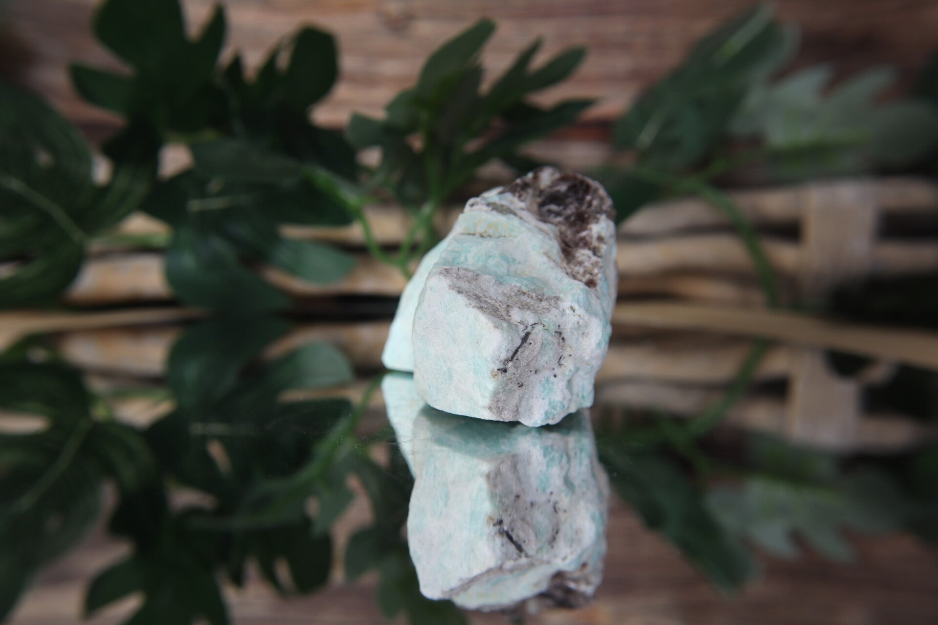 Dit bijzondere ruwe stuk amazoniet combineert de zachte, kalmerende energie van amazoniet met de aardende werking van rookkwarts. De aanwezigheid van mica zorgt voor een subtiele glinstering en geeft het stuk extra diepte en karakter. Een krachtig en puur natuurproduct.