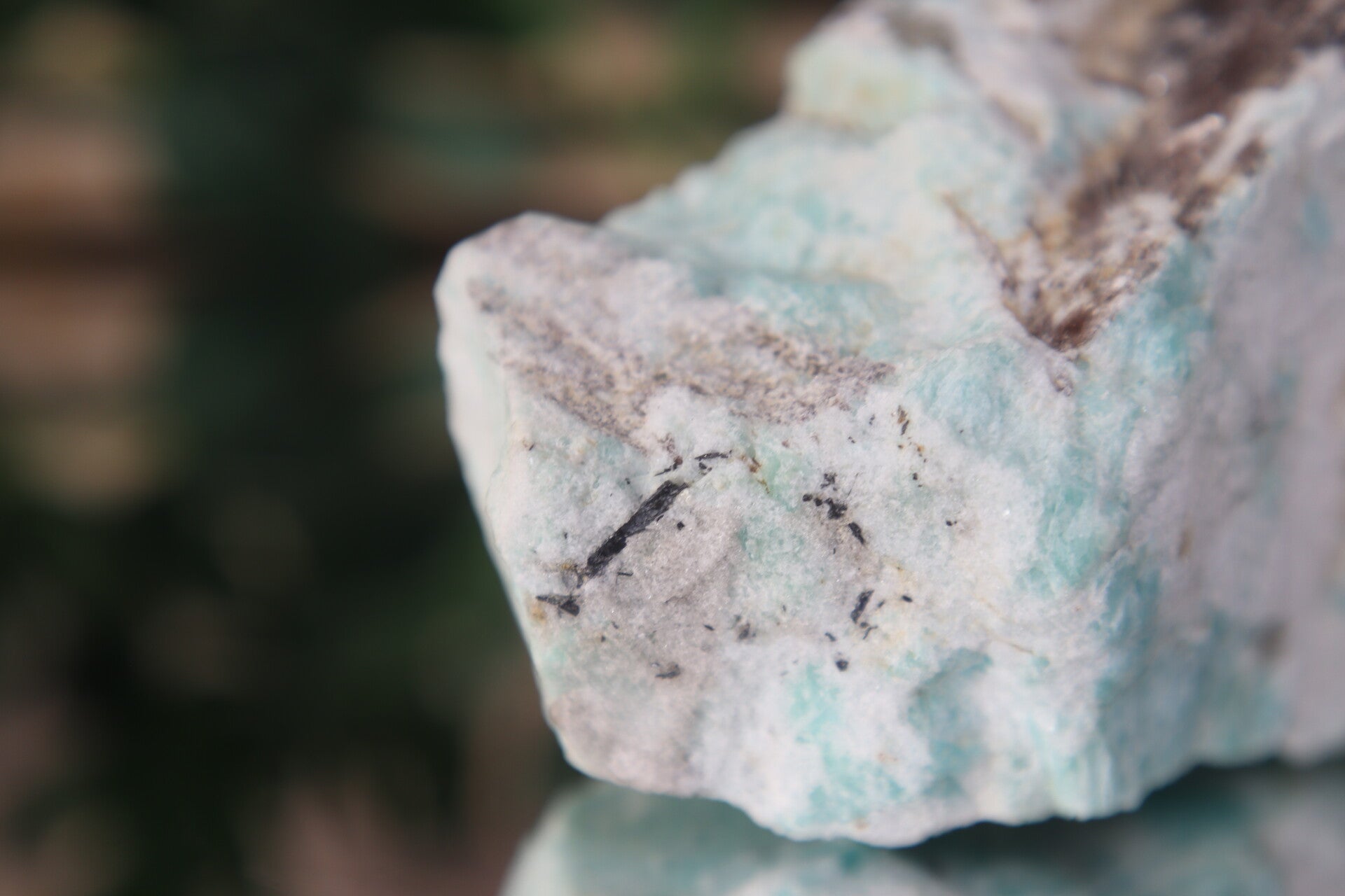 Ruw Amazoniet Stuk #0636 – Met Mica en Rookkwarts