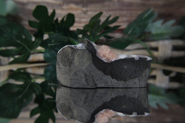 Dit bijzondere stuk chalcedoon met stilbiet heeft een zachte, serene uitstraling. De combinatie van de gladde chalcedoon en de kristallijne stilbiet zorgt voor een mooi contrast in structuur en uitstraling. Een uniek natuurproduct dat rust en verfijning uitstraalt.