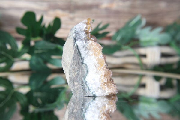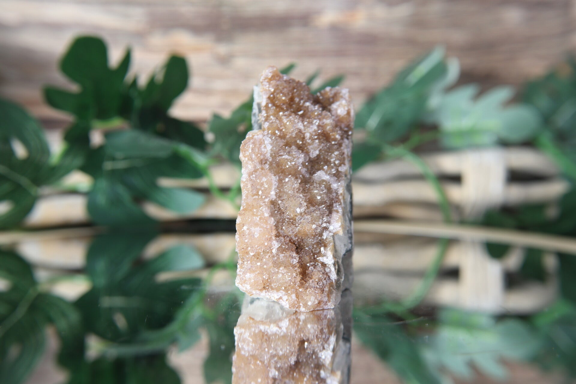 Deze prachtige Rainbow Amethist met cut base is aan de onderzijde vlak geslepen, waardoor het stuk stevig rechtop kan staan. De natuurlijke kristallen tonen mooie paarse tinten met subtiele regenboogreflecties wanneer het licht erop valt, wat dit stuk extra bijzonder maakt.