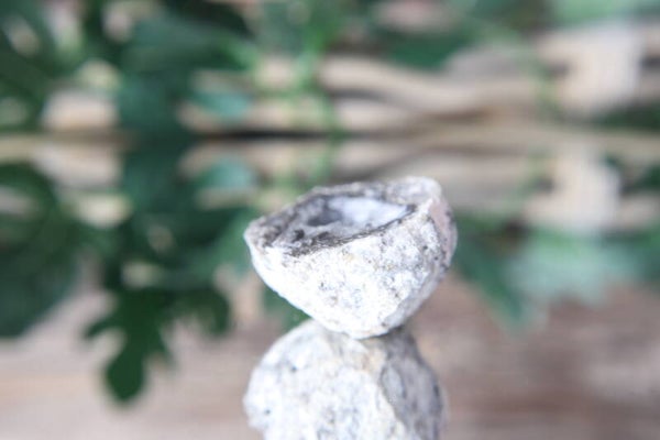 Deze kleine chalcedoon geode heeft een prachtige natuurlijke holte gevuld met fijne kristallen. De zachte uitstraling van chalcedoon gecombineerd met de glinsterende binnenkant maakt dit een subtiel maar bijzonder stuk.