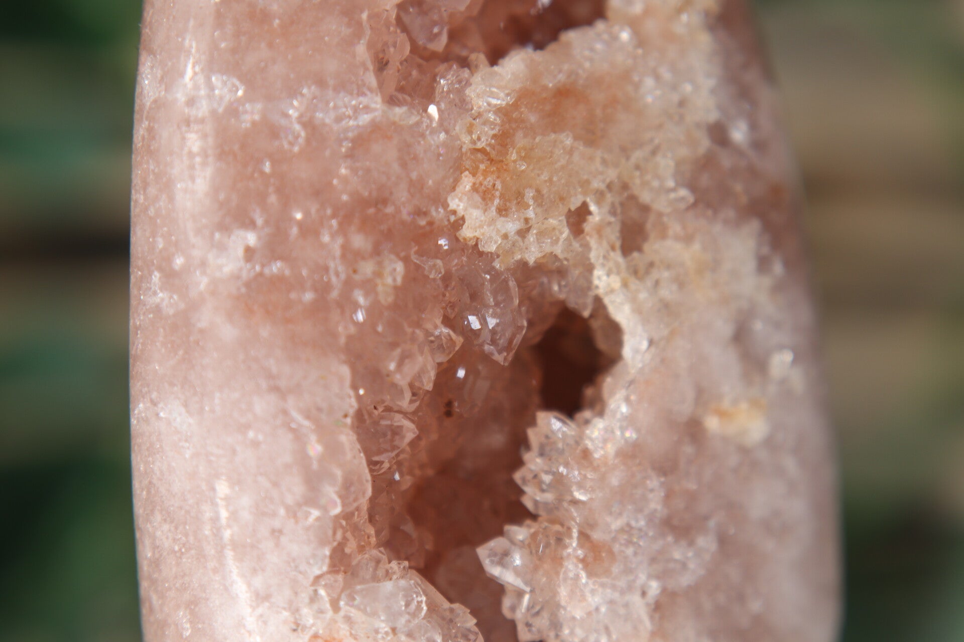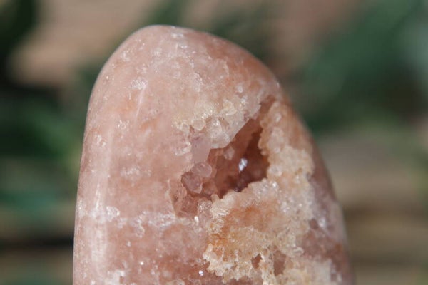 Deze prachtige roze amethist freeform heeft een zachte, rustige uitstraling met subtiele roze tinten en glinsterende kristallen. De natuurlijke vorm en fijne structuur maken dit stuk tot een verfijnde en liefdevolle eyecatcher.